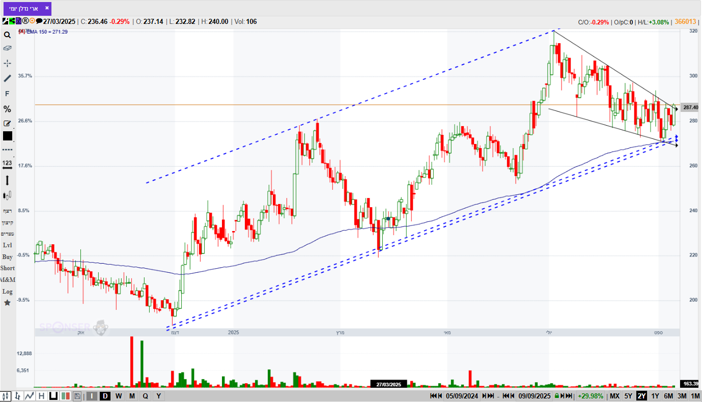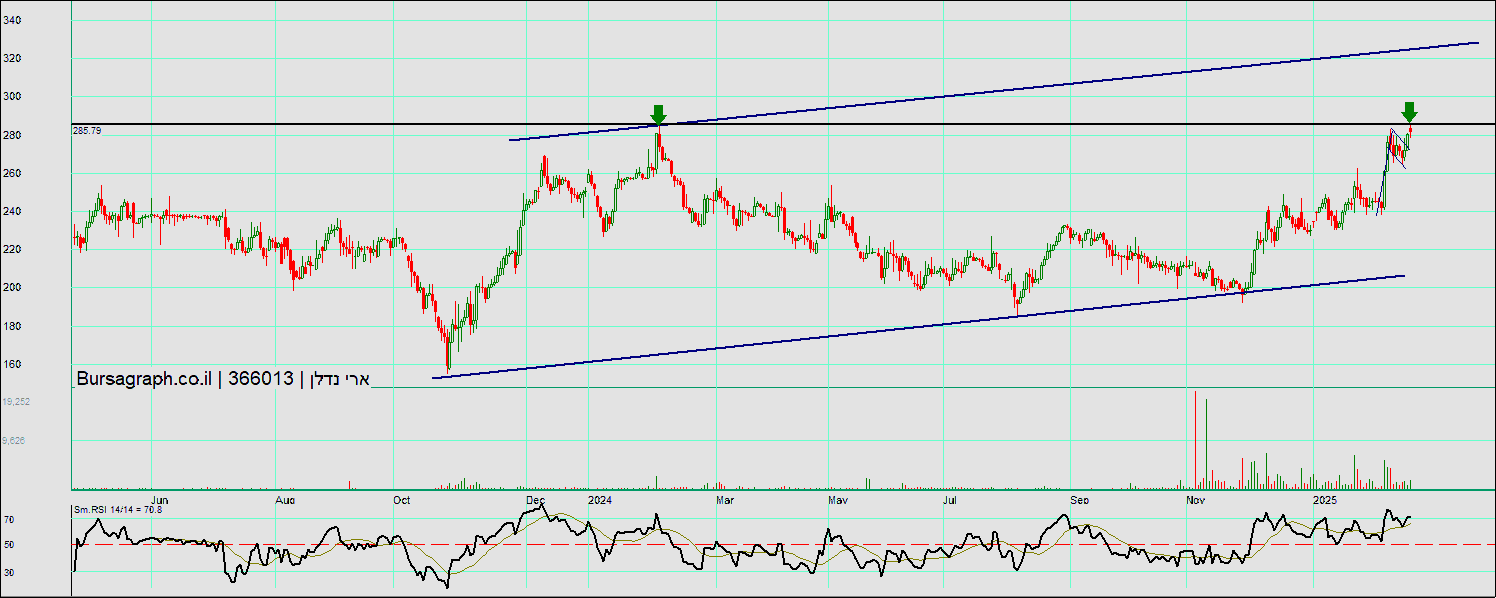 ארי נדלן מעל 286-290 תראה יעד הדגל 325-330 (ללת)