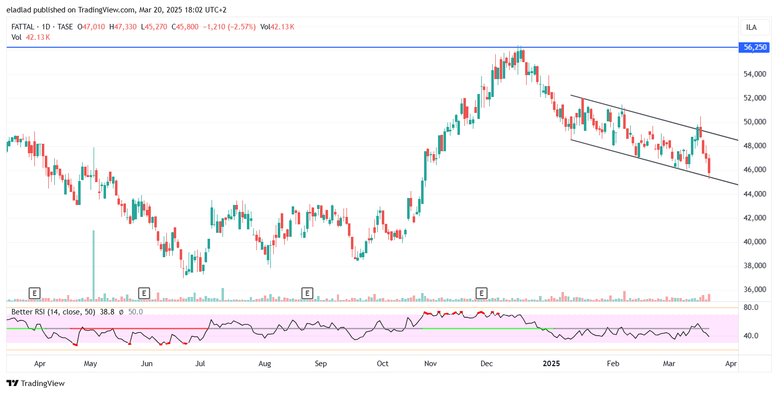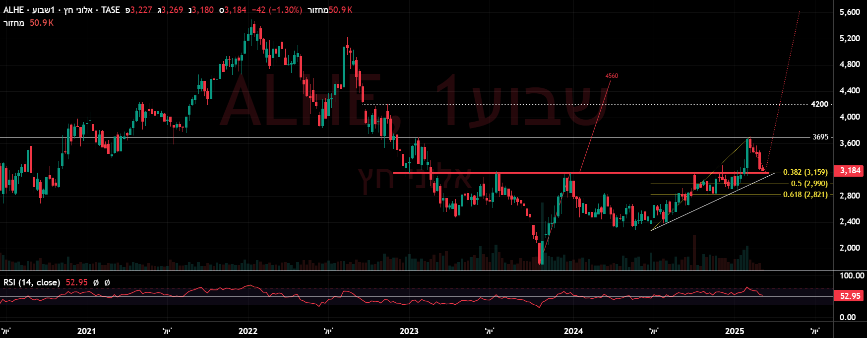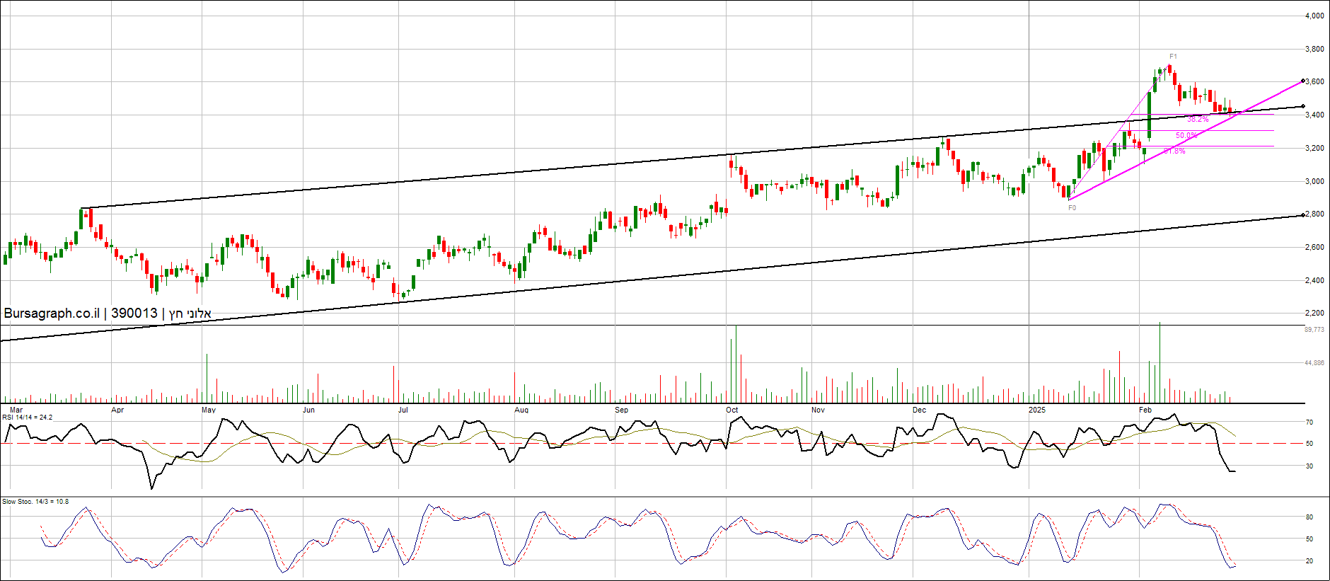 צריך לראות אם שבוע שעבר ינסה לפרוץ אותו ולייצר שפל ושיא עולה במינורי. לחלופין, אם השוק האמריקאי יירד, גם המניה יכולה לייצר שפל יורד.