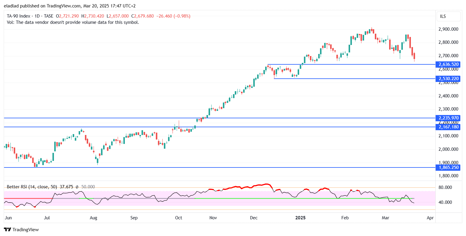 ירידות השערים מוול סטריט הגיעו לת”א - מדד ת”א 125 יורד 1.5%