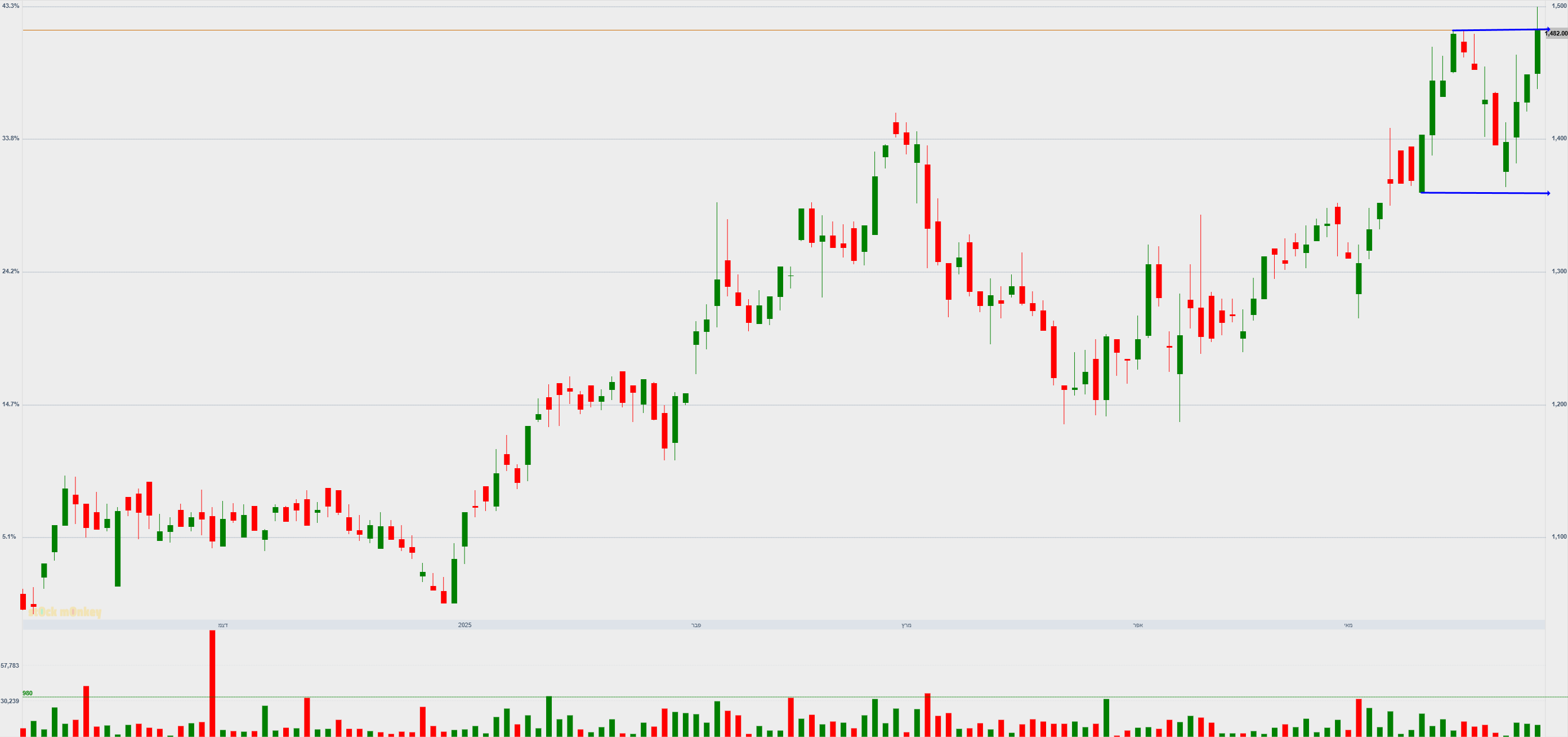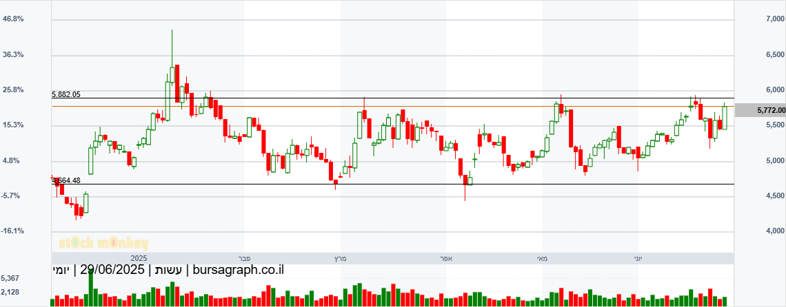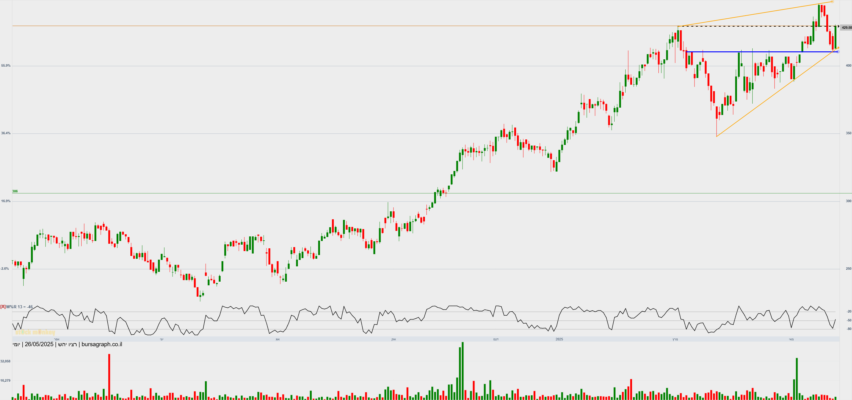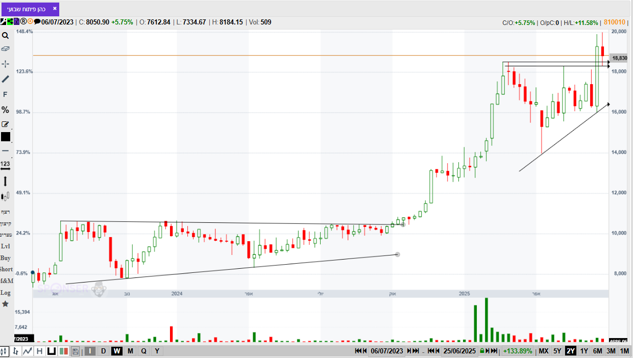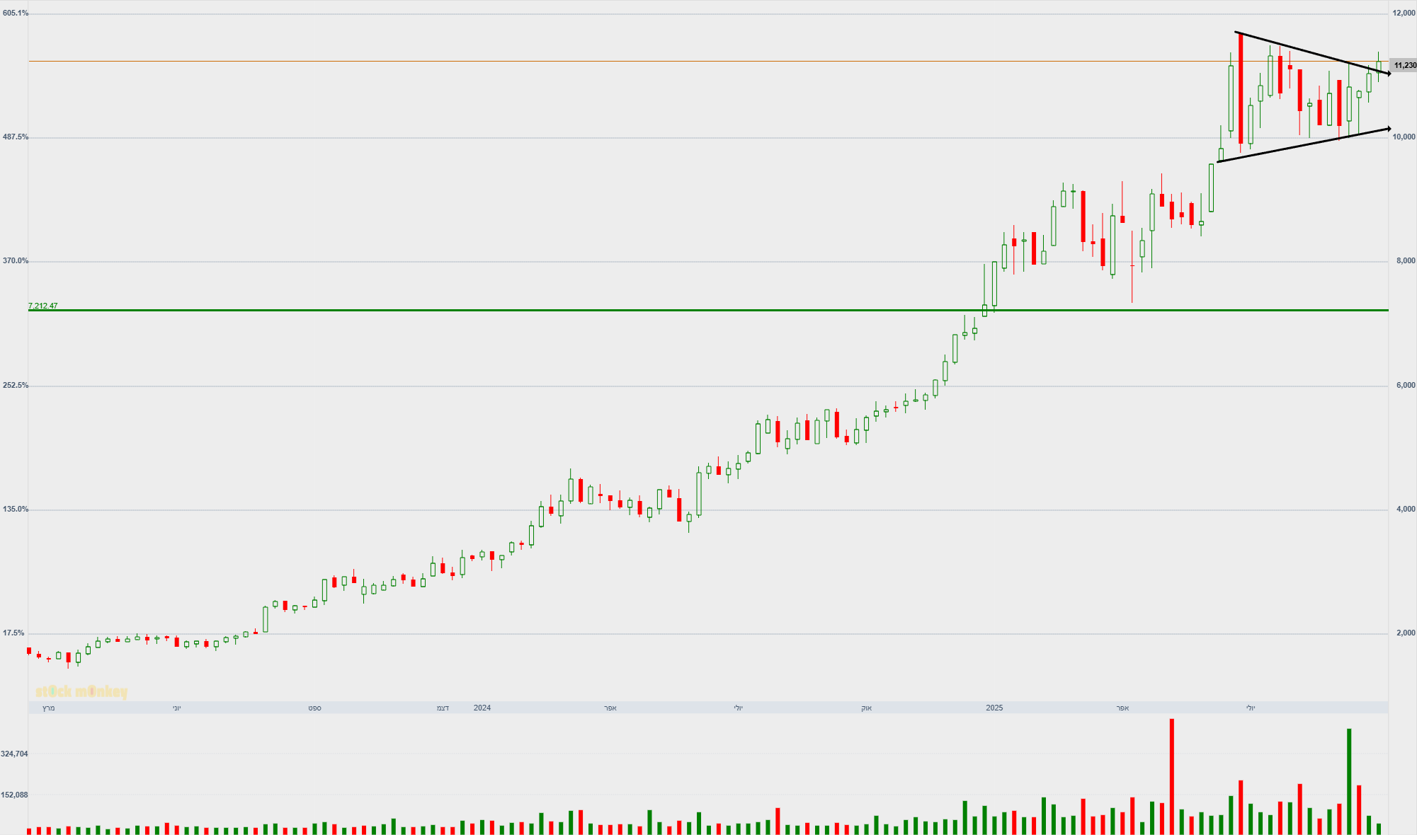 גילוי נאות..מבחינתי,איך שאני רואה את התנהלות המניה...היא רציו המלכה מספר 2...אולי תהיו קצת סקפטים וכדומה...אבל זו תחושתי. קחו גרף שבועי עם יעד מאוד מכובד. 😛