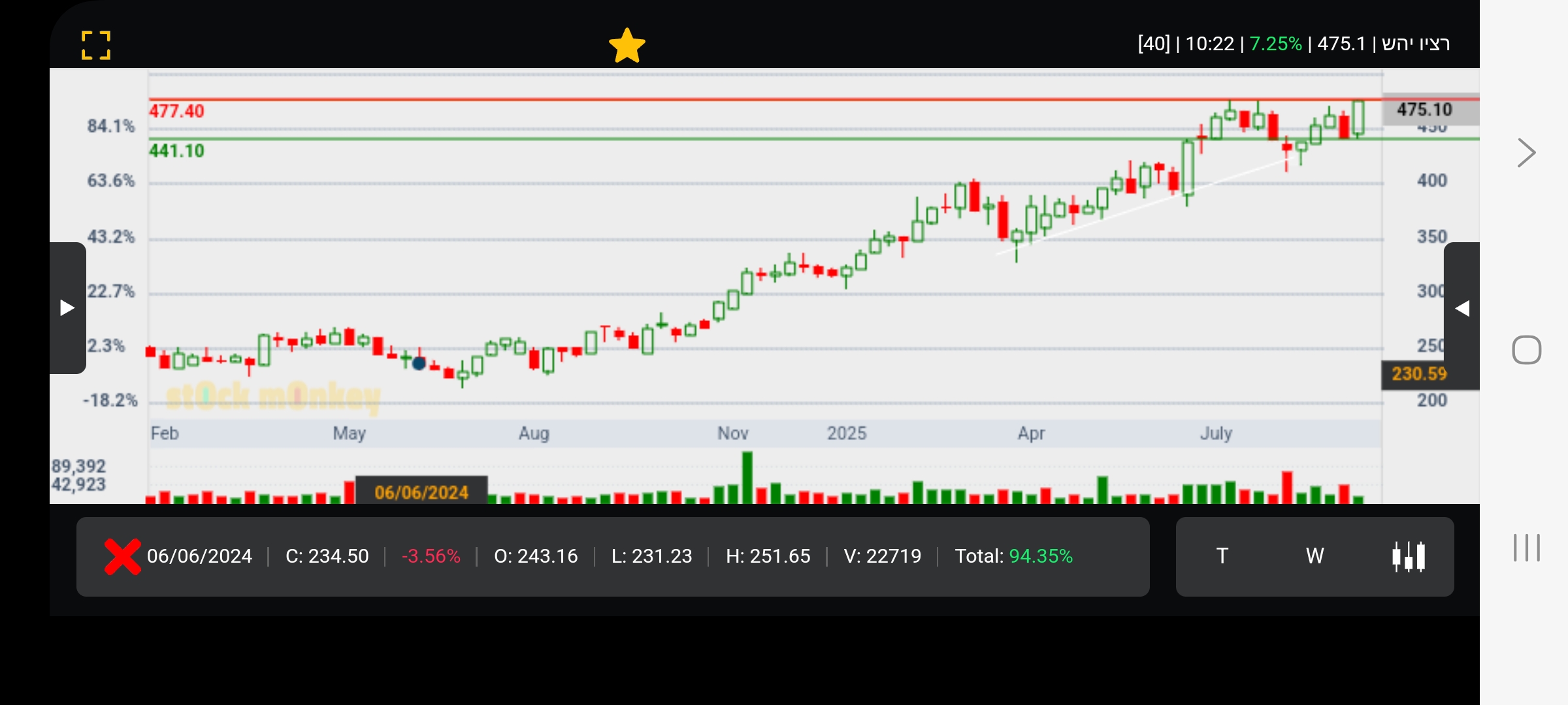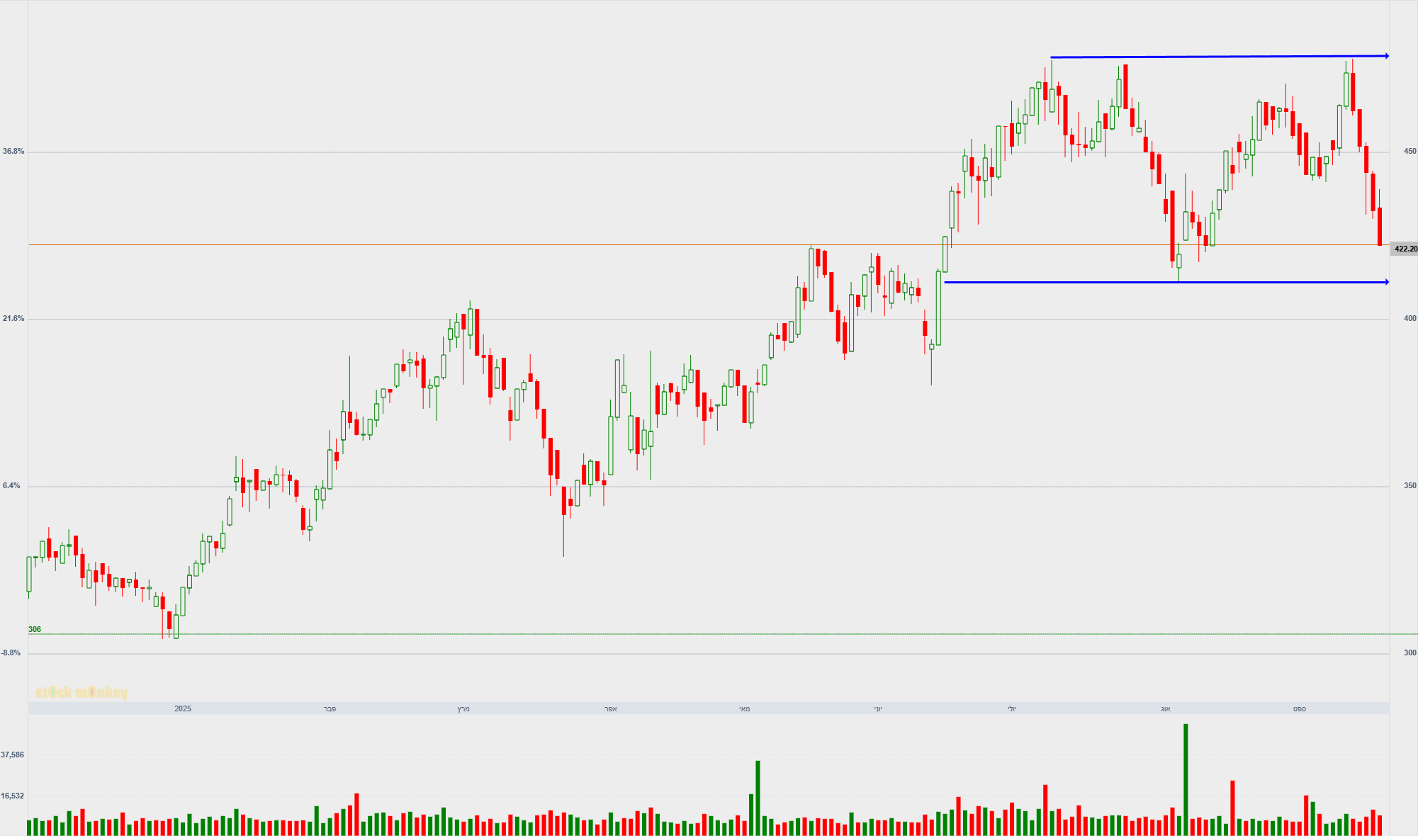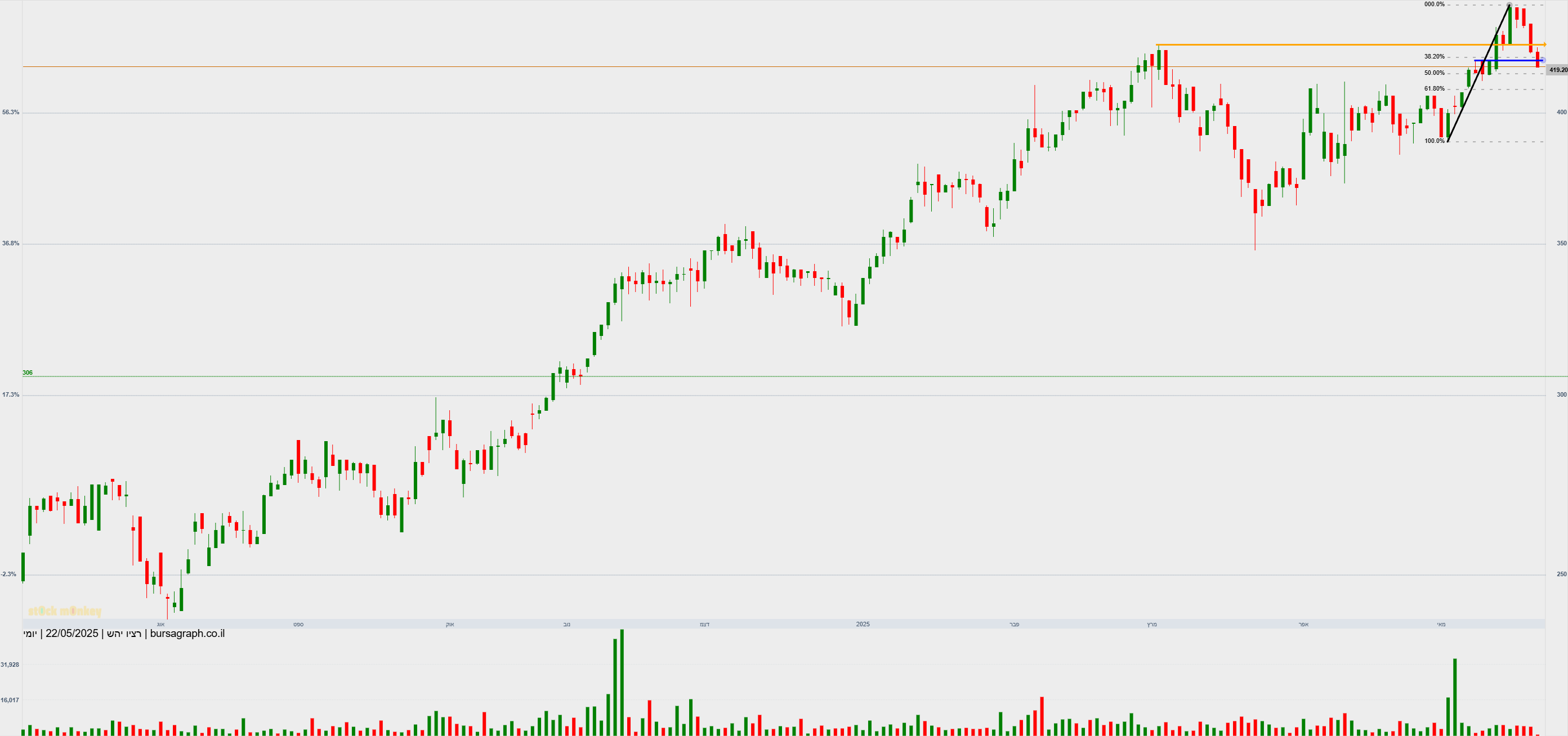 מהרגע שפרצה את איזור 428 לתומי חשבתי שתנוע לכוון 486 הנכסף.(לא ביום יומיים). ירדה לבדוק את רמת הפריצה ואף מעבר לכך.פריצת שווא. אי לכך ובהתאם לזאת..בדרכה לתיקון פיבו 50 שזה איזור 415.5 ושם תיבדק שוב. באם תתן נר חזר למעלה ותסמן את רמת 415.5 כתמיכה...נחזק הפוזיציה.בראייה שבועית..תיקון בריא...לא מתרגשים.בהצלחה למחזיקים.😃