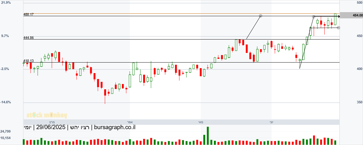 שנתמכה טוב שם. מעניין לראות היום סגירה 👍 כעת קצת יהיה לה קשה עם ההתנגדות האחרונה של הפובינצ'י. אבל המומנטום נראה אש וכנראה תעבור אותו. יש גם ביקוש יפה שם היום בעדכון, לא שזה אומר הרבה.. גם ישראמקו כתבתי אתמול 🌹