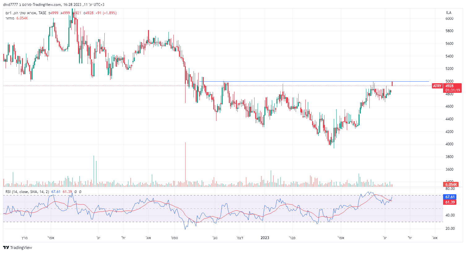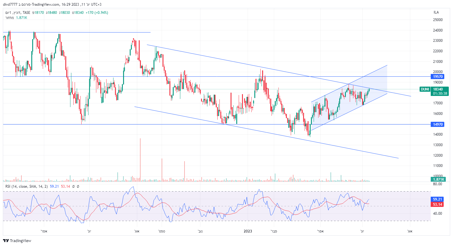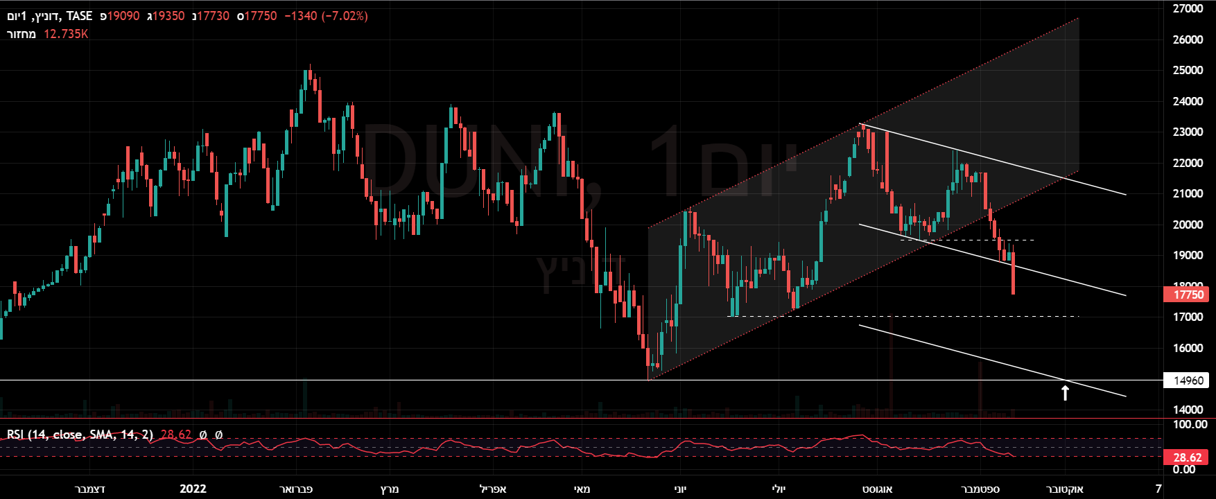 לשאר. אכן רוטש' נלקחה לבחינה בגלל המכפיל, אבל כאמור קצת לא ברור המצב בנייר. לעניות דעתי לטווח הקצר: מעל 3550-3570 תמשיך למעלה. מתחת ל3320 תתקן עוד (יכולה להשיל 500 נקודות בקלות במסגרת תיקון). לטווח ארוך (בהנחת שוק חיובי!) היא במגמת עלייה מובהקת. היא עדיין בתוך תעלה עולה ארוכה שהחלה בשפל של שיא הקורונה (אי שם בפאניקה של מרץ 2020). לכן עליך לקבל החלטה לפי אופי ההשקעה שלך בנייר ומה המטרה שלך במסחר. מקווה שעזרתי. 🤞