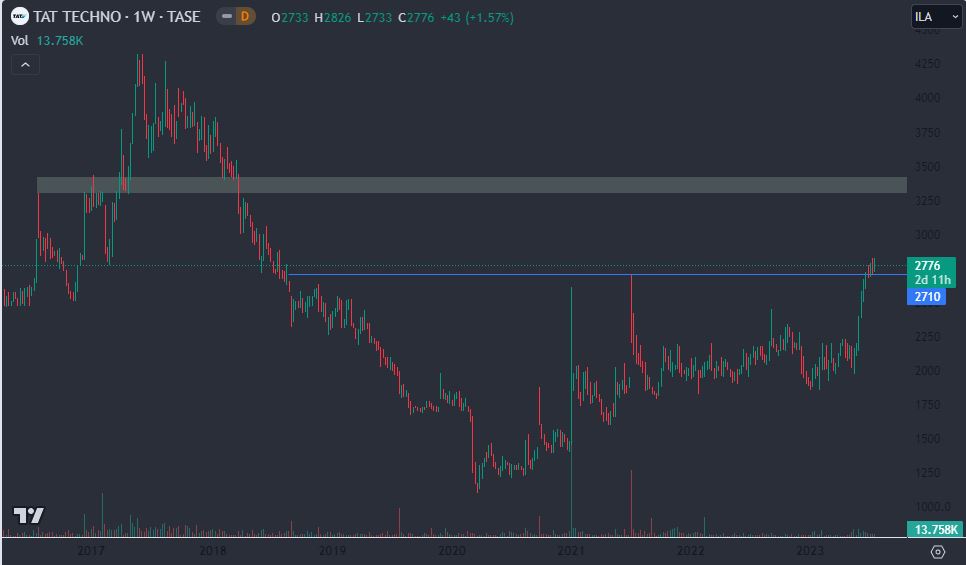 נקודת כניסה מעניינת מאוד סביב 2750. קבלה רוח גבית מסקטור התעופה ונראה כמו הכנה לדגל + תמיכה אופקית. הסיבה שאני לא נכנסתי היא בעיקר נזילות ויש לי מספיק כאלה בתיק שלא מעוניין להגדיל.
