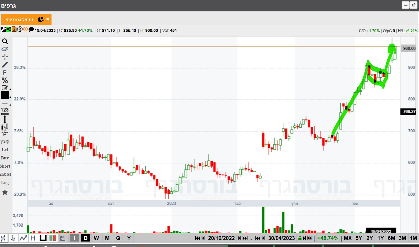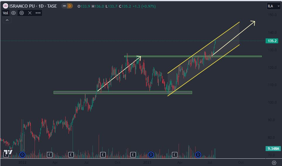 יציבה מאוד ונעה בצורה ברורה קדימה כבר הרבה מאוד זמן.. חיובית מעל 126. הייתי מחכה לנסיגה אחורה וכניסה נוחה יותר באזור 129.