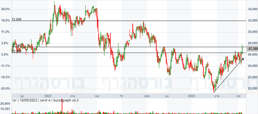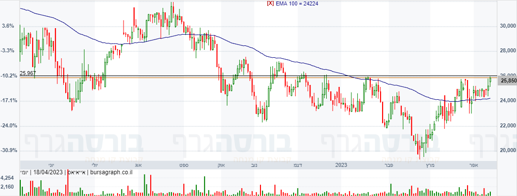 שיא אחרון: 23850. כעת נסחרת ב23700 לערך. אם מצליחה לפרוץ, היעד הראשון הינו 27000-27100. הצלחות לכולם!