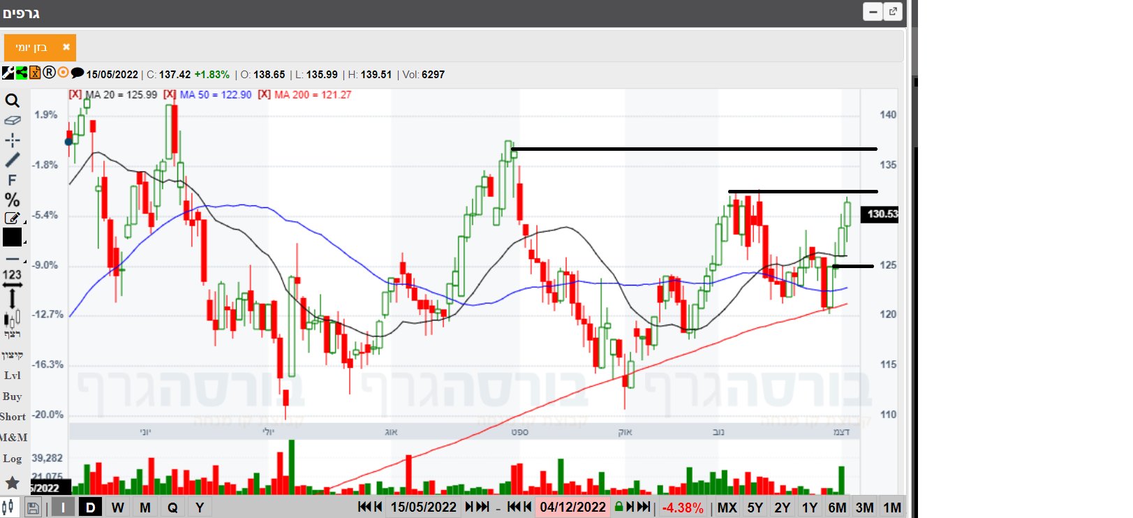 בזן למחזיקים מתקרבת לאזור התנגדות 131-133