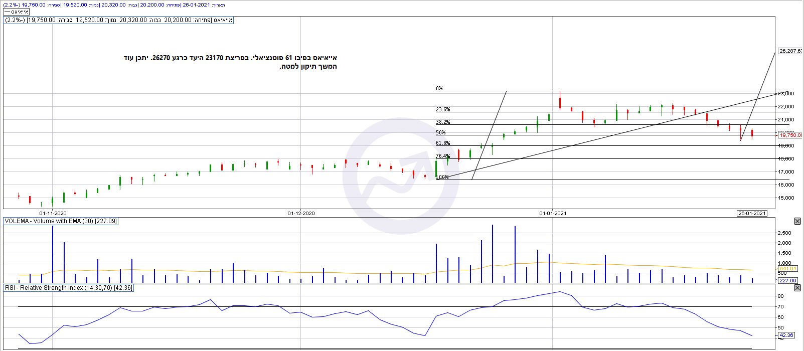 פיבו 61 פוטנציאלי. בפריצת 23170 היעד כרגע 26270. יתכן עוד המשך תיקון ולכן סטופ אפשרי ב 18400 לא מחזיק כרגע ולא ממליץ