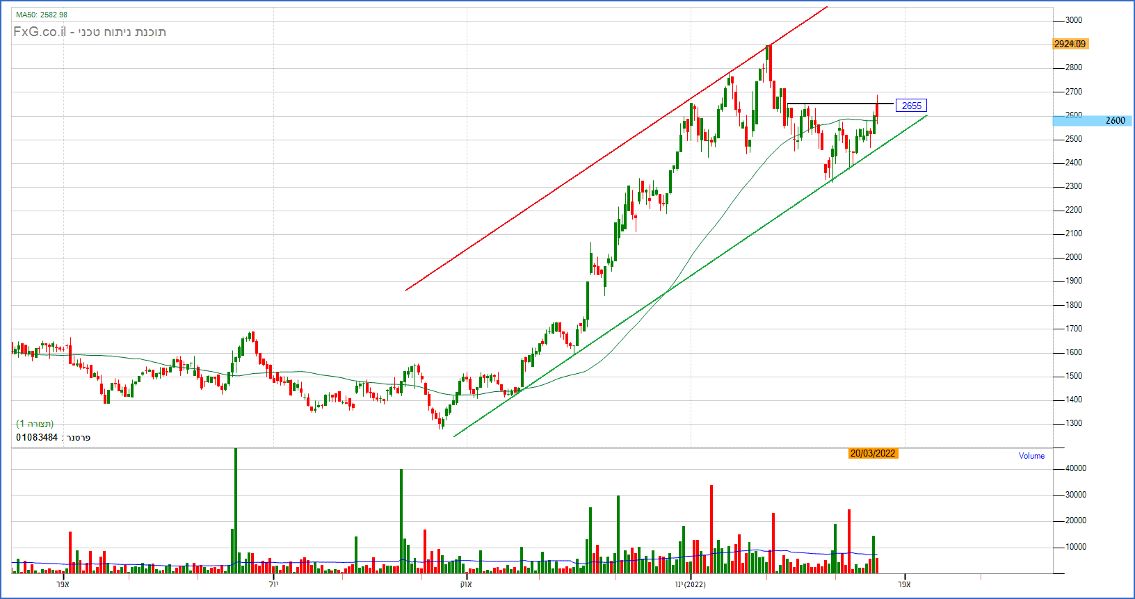 היפוך על קצה תחתון תעלה עולה. מנסה ליצר שיא קצר עולה בפתיחה בגאפ מעל אופקית ב2655 אך מקבלת ממנה גג. אישור לפריצה יהיה ברגע שיפרצו שוב את מחיר 2655. בלי המלצה למסחר.