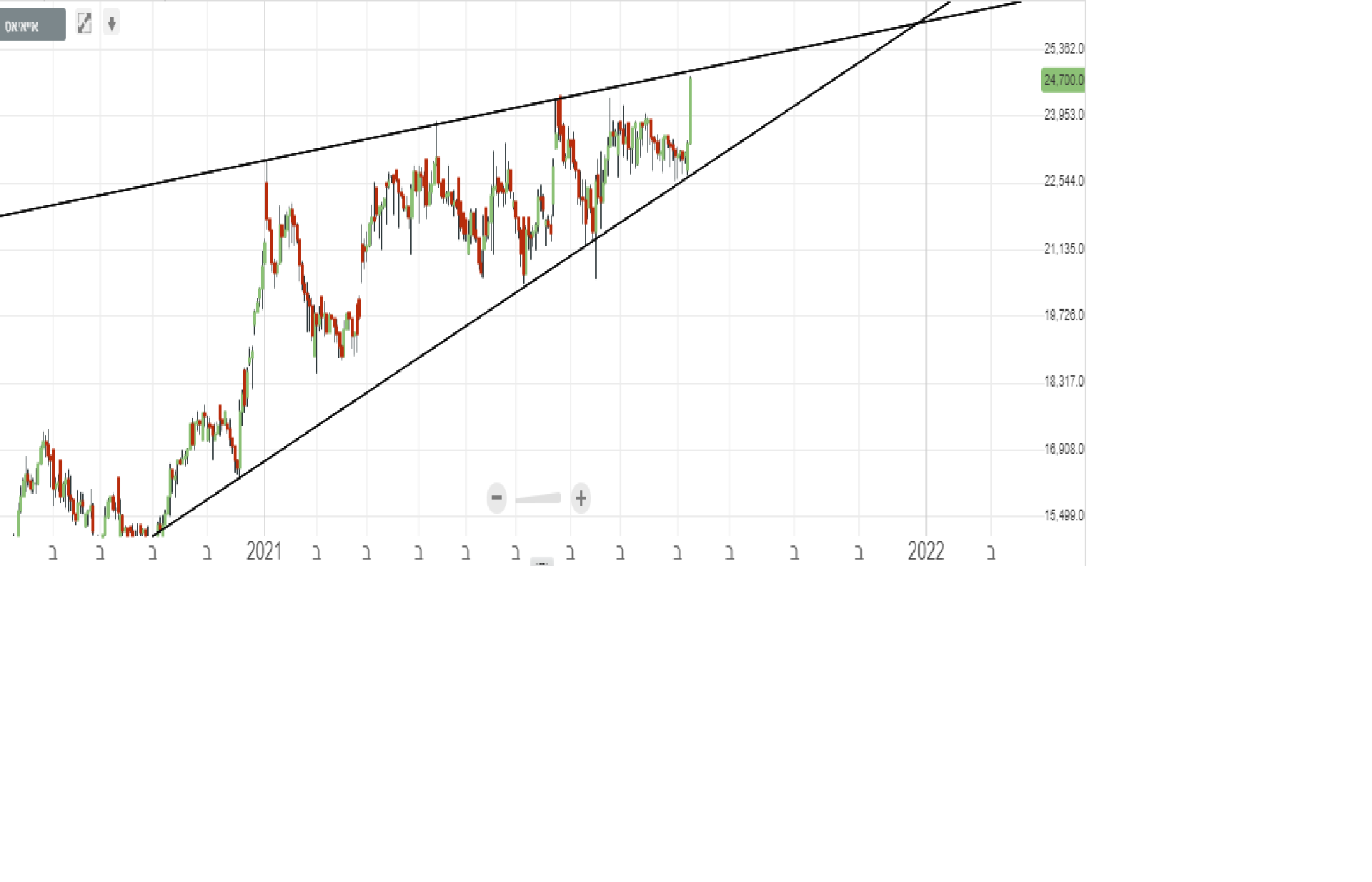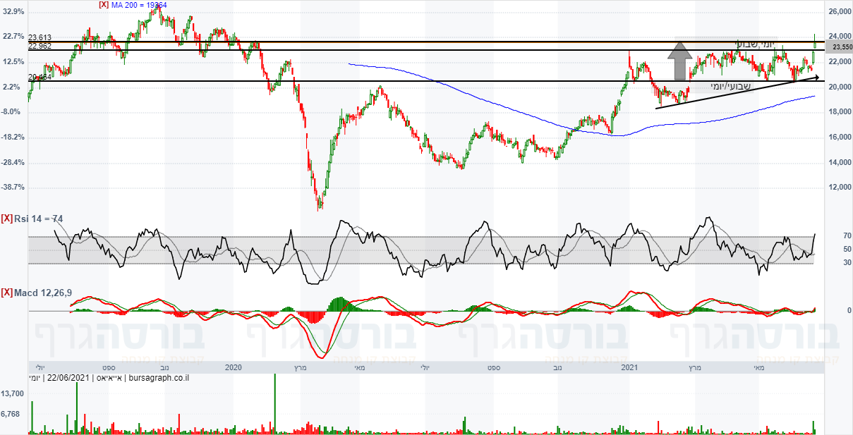 פוטנציאל לפיבו 61. במידה ותפרוץ 23140 היעד 25400. נכנסה מנה ב 22000 ותחוזק במידה ותפרוץ. סטופ 20560 אין באמור לעיל המלצה לקניה