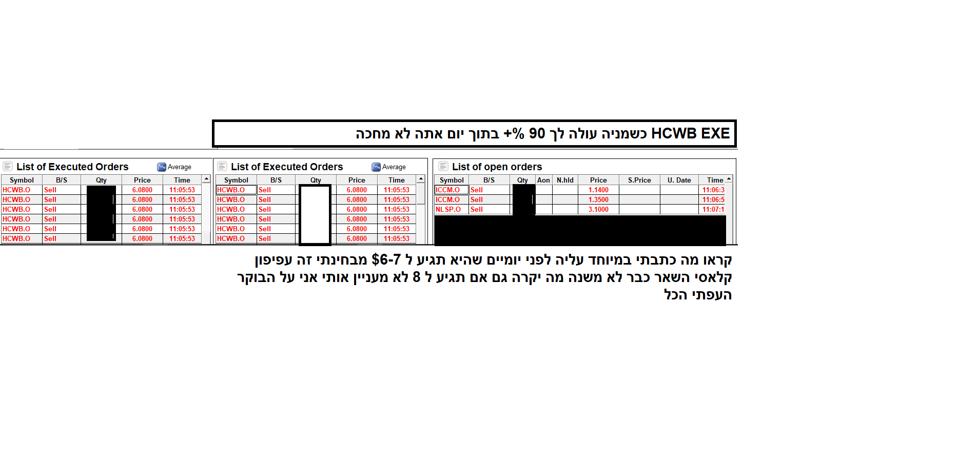 לא חושב שאתה מתרברב אלא שבפעולות שלך תחדד לגבי סטופ. אמרתי איני פועל כמוך ולא יכול לפעול כמול אבל בינינו נתת קרדיט מאוד גבוה ל hcwb וגם ל rvsn ולא תמיד מובן על מה כי אין בסיס ולכן תבהיר שזה רק בגלל טרלול וצביע יותר סקפטיות מבטחון בקיוםאנטנה. זה חא תמיד קורה כמושציפית