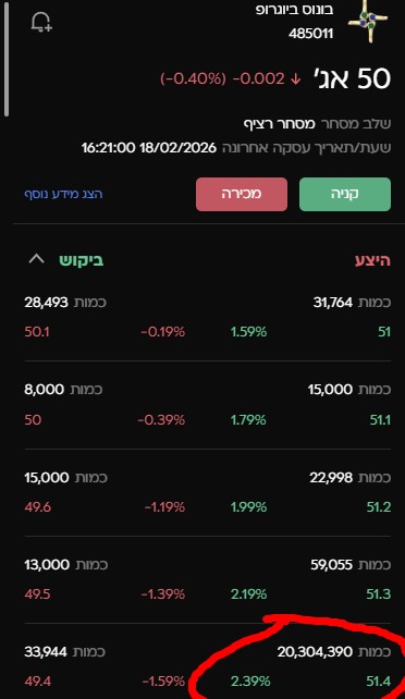 מכירה בגבוה .אלא מה אתמול עבר דבר מטורף שם והיום יחסית שמרה על גובה סביב 50 (לכן ההגדלות) יתכן ויש לאדון מרצקי כוונות להגיע לשער הגיוס מעל 60 אני סביר להניח אפרוש בדרך אבל בינתיים שומר על אופציה של בום טראח ברצף.