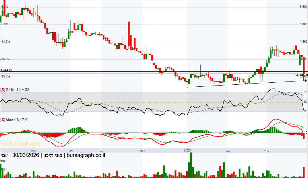 בוני תיכון גם עם סטייה שורית בMACD פריצה מעל 3700 (ללת)