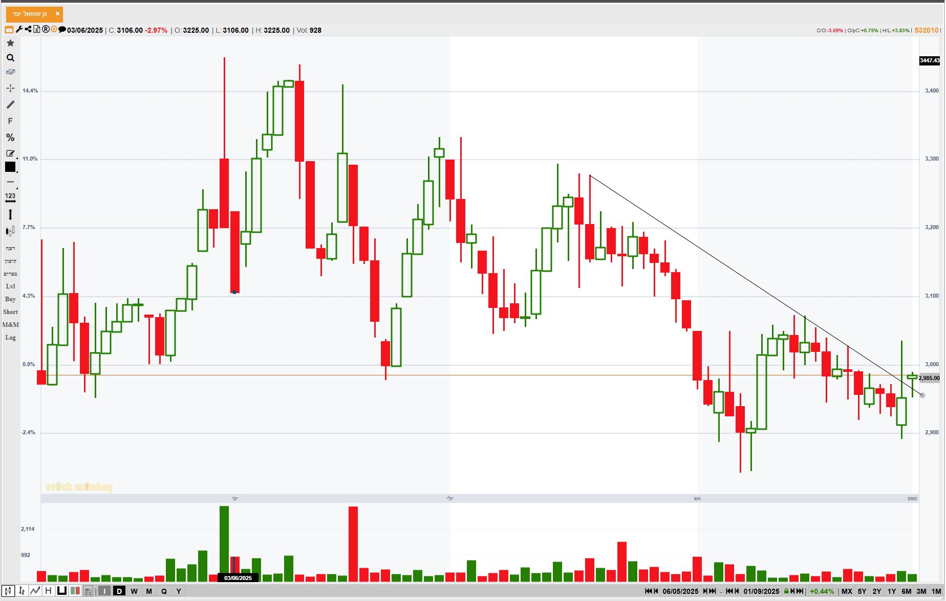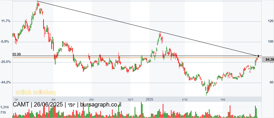 גן שמואל פורצת קו מגמה יורד ונתמכת מעליו