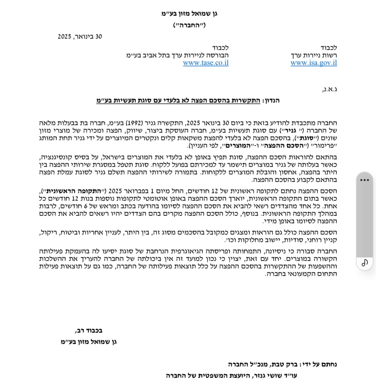 גן שמואל, 4 עיסקאות מחוץ לבורסה כמעט 10 מילי