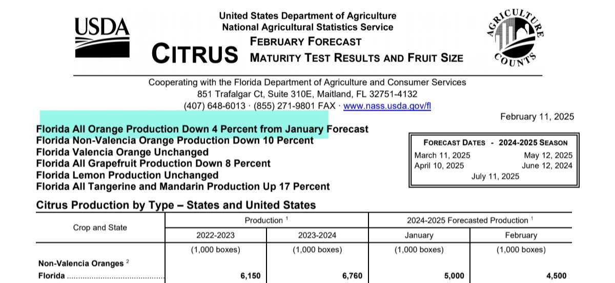 אולי מחכים לדוח הקרוב?!..... אני עוקב אחרי משבר ההדרים ואין כרגע שום תסמין שהיא לקראת שיפור, ההיפך, חקלאים בפלורידה מרימים ידיים, ומוותרים על גידול ההדרים.