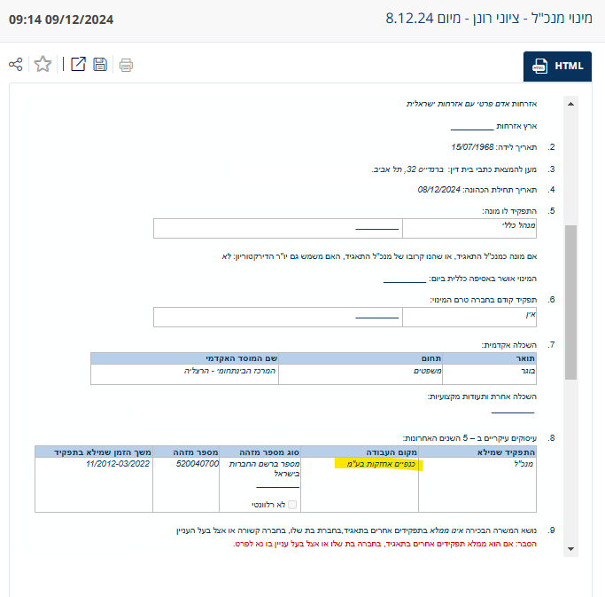 לאחר שיתקבלו החלטות בעניין עיזבונו של מר בורוביץ המנוח, תעדכן החברה ביחס להחזקותיו במניות החברה