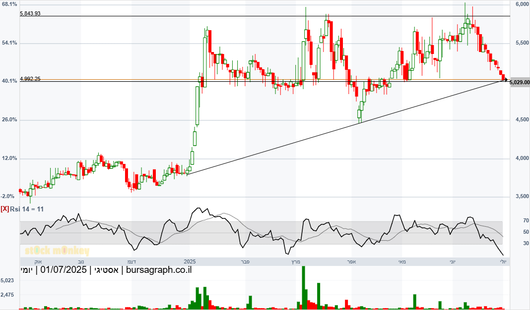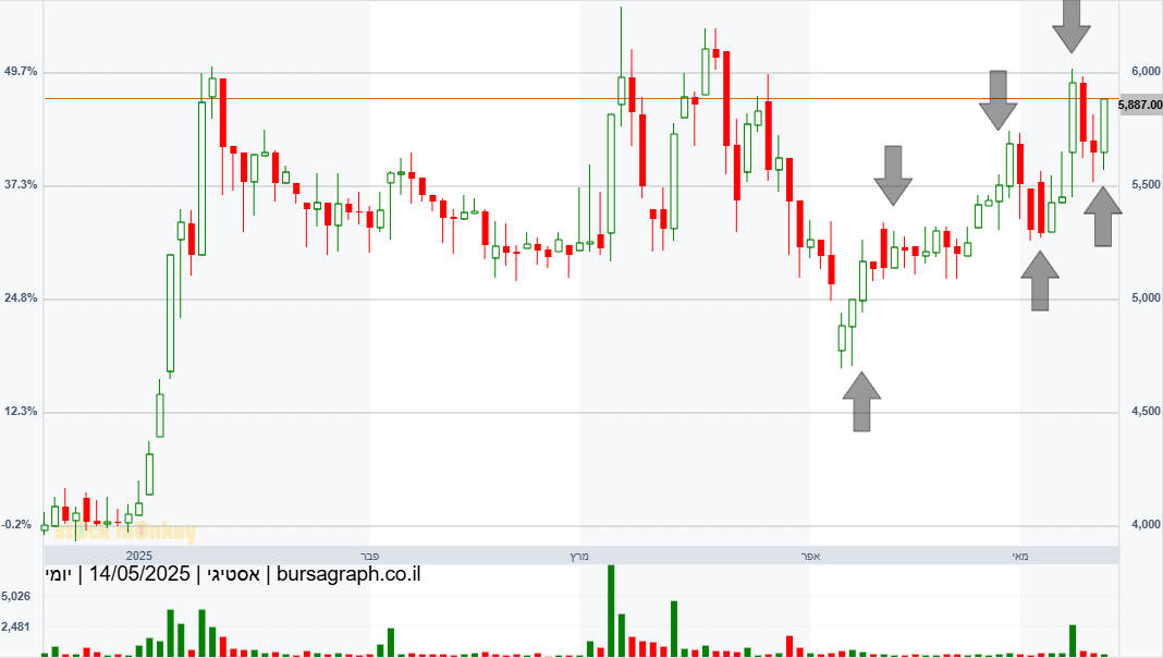 אסטיגי התהפכה אתמול על קו מגמה עולה והיום