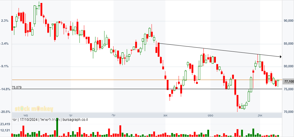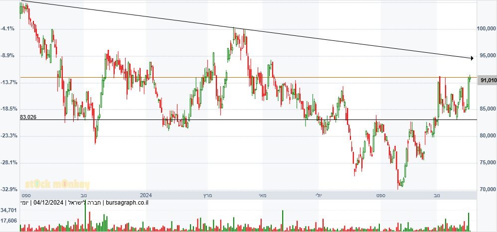 בירידה לממוצע 200 או תרד עוד קצת ל 82-81 לבדוק את הפריצה של הרוכ"ה בכל אופן כל עוד מעל 80 יש שם יעד של תבנית רוכ"ה לכיוון 97