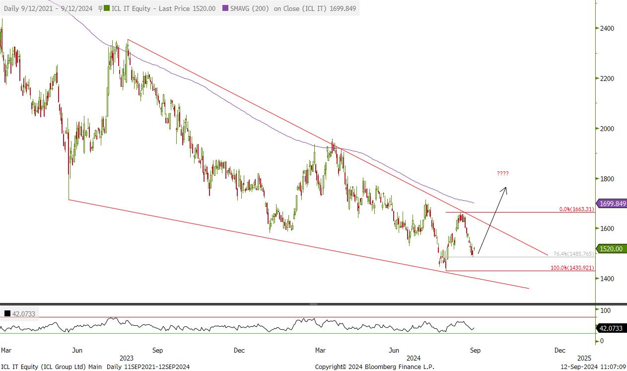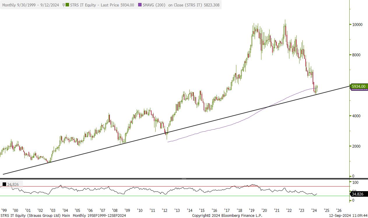 ארוך טווח וגם ממוצע נע 200 חודשי סביב הנמוכים של הסייקל. המשך זחילה/תיקון עולה ביחס סיכוי/סיכון חיובי.