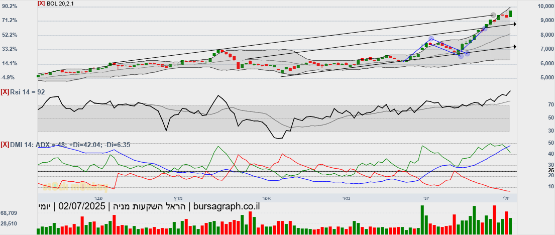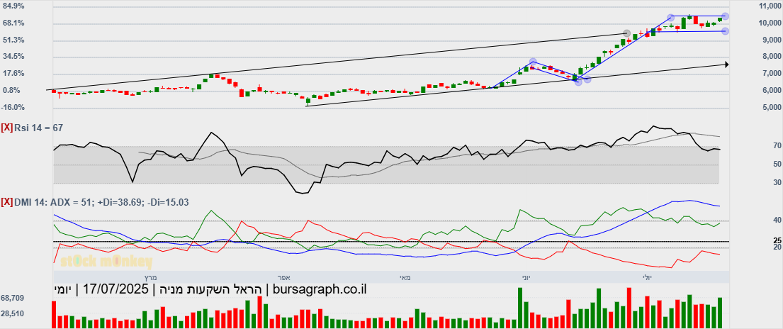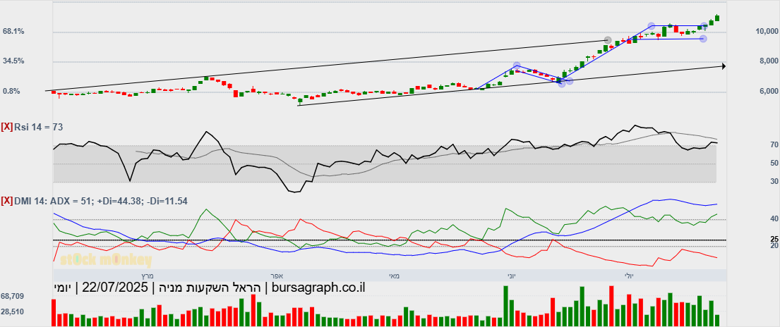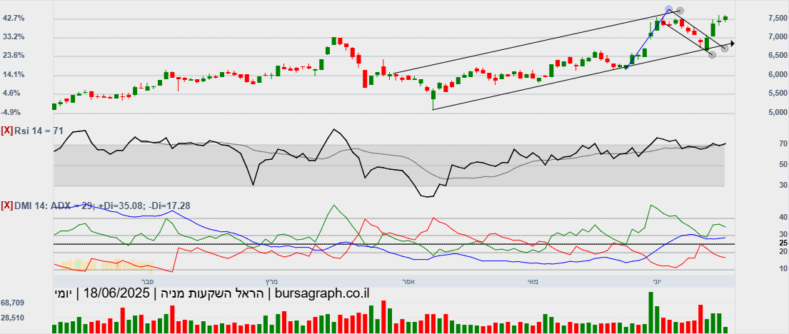 החברות המובילות לע"ד,הראל השקעות,והפניקס לא מפסיקות יום יום, עם עוד מדרגה צפונה,ועם דחיפה מכיוון הטכני,ומכיוון הפונדמנטלי,כשכניסת הזרים מורגשת ובאגרסיביות יתרה. מעלה את הטכני בשניהם.🙇