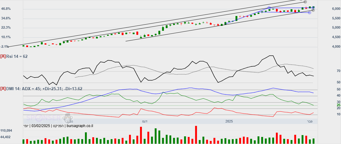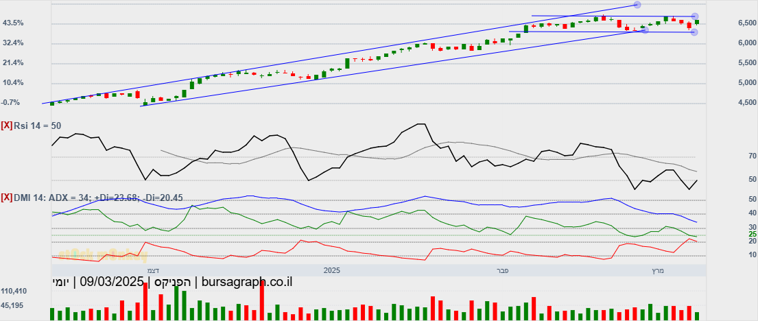ביצבוץ קל של פריצת תעלה עולה בטווח הארוך,ומענין מה יקרה שבוע הבא עם פרסום הדוח השנתי,והאם תלמד מהפניקס,למרות שהמחזור היה גבוה,לא מספיק לע"ד,אבל פרסום הדוח כנראה ישפיע מאד על ההמשך,ואחרי שנה שלמה של עליות רצופות בפיננסים.
