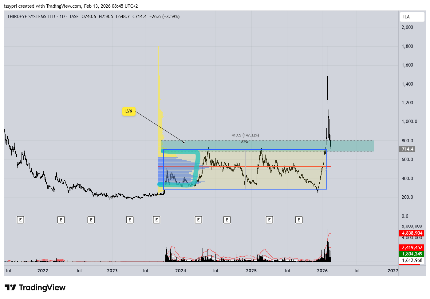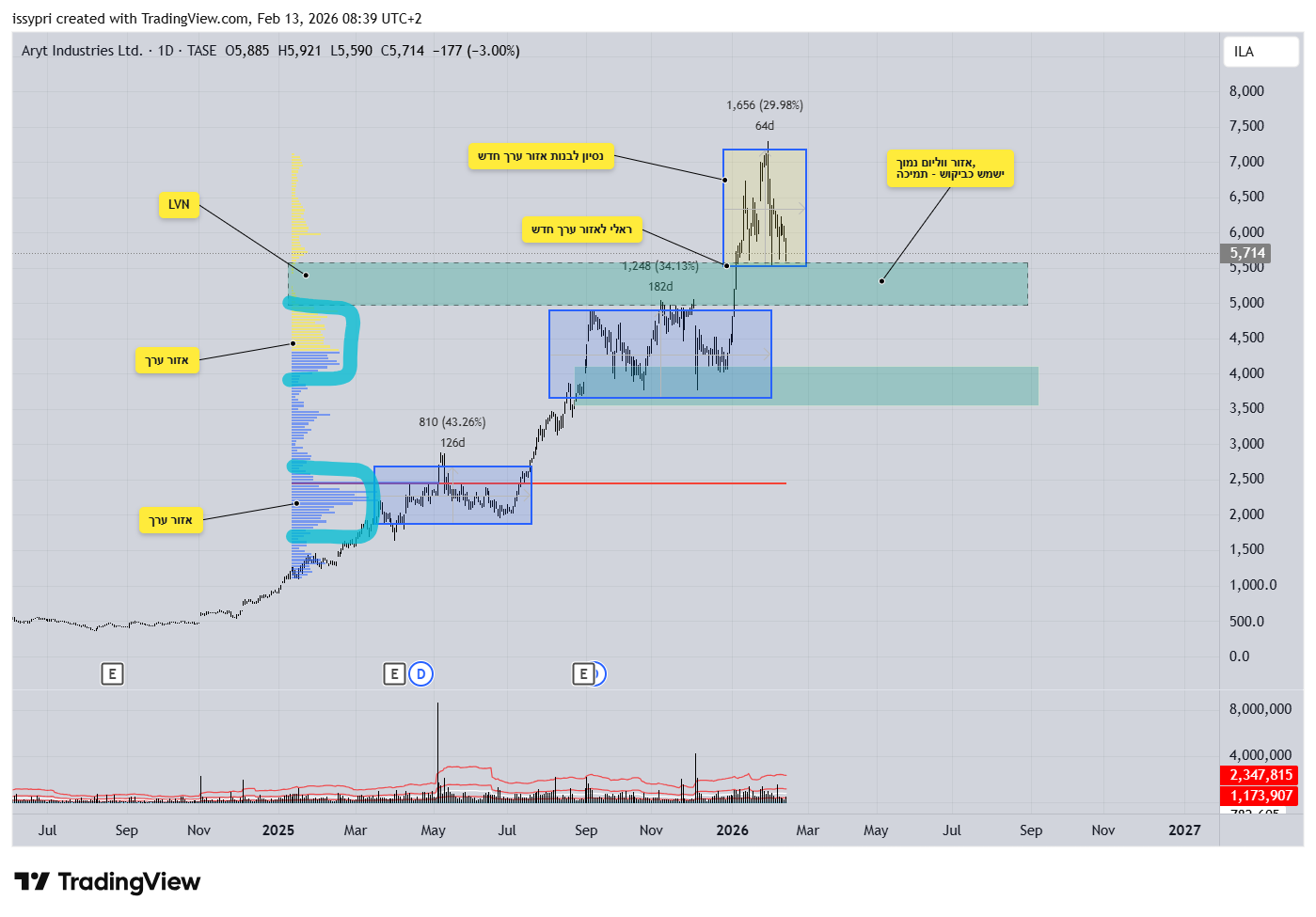 חברות הביטחוניות שנכללות במדד המעוף,גם היא אימתה בשישי האחרון את פריצת הדגל כשעשתה זאת במחזור מאד גבוה,וטיפסה לגבוהית שנתית חדשה,כשהיעד שניתן ע"י צביקה הוא 35000 המהווה את קצה התעלה העולה. לע"ד,עם פרסום הדוח השנתי והרבעוני של 2025,וקצב ההזמנות שנכנסו כבר בתחילת 2026,עשויים לקבל פריצה של קצה התעלה ואל יעד של הדגל,ולקראת סוף חודש מרץ,המהווה את הרבעון הראשון, ואולי עם עוד טריגר של הזמנות נוספות שעומדות בקנה ועשויות להיכנס עוד ברבעון הנל. כל הנכתב על דעתי בלבד!