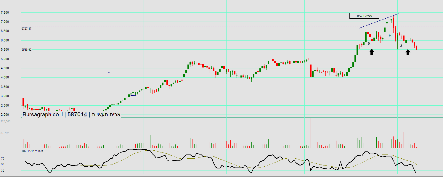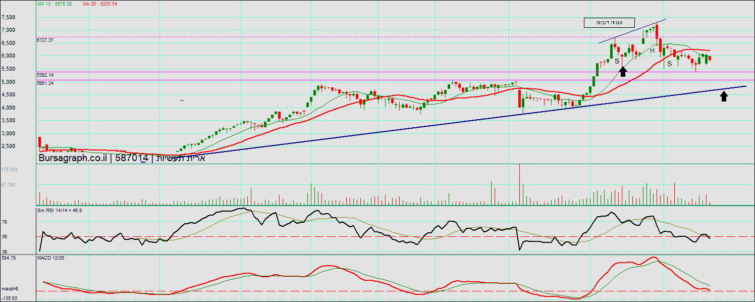 מהביטחוניות שמחזיקה הזמנות מאד גדולות ממשרד הביטחון,והן ממשיכות להגיע די בעוצמה! המניה יצאה למימוש לפני כעשרה יימם יחד עם כל הביטחוניות, ובשבוע האחרון נעה על הרצועה התחתונה של התעלה העולה ובמחזור יחסית גבוה בהתאמה לחברותיה,ולע"ד היא עשויה לחזור שוב ליעד השיא-14000 כשבדרך הפרעה קלה ב 13800.