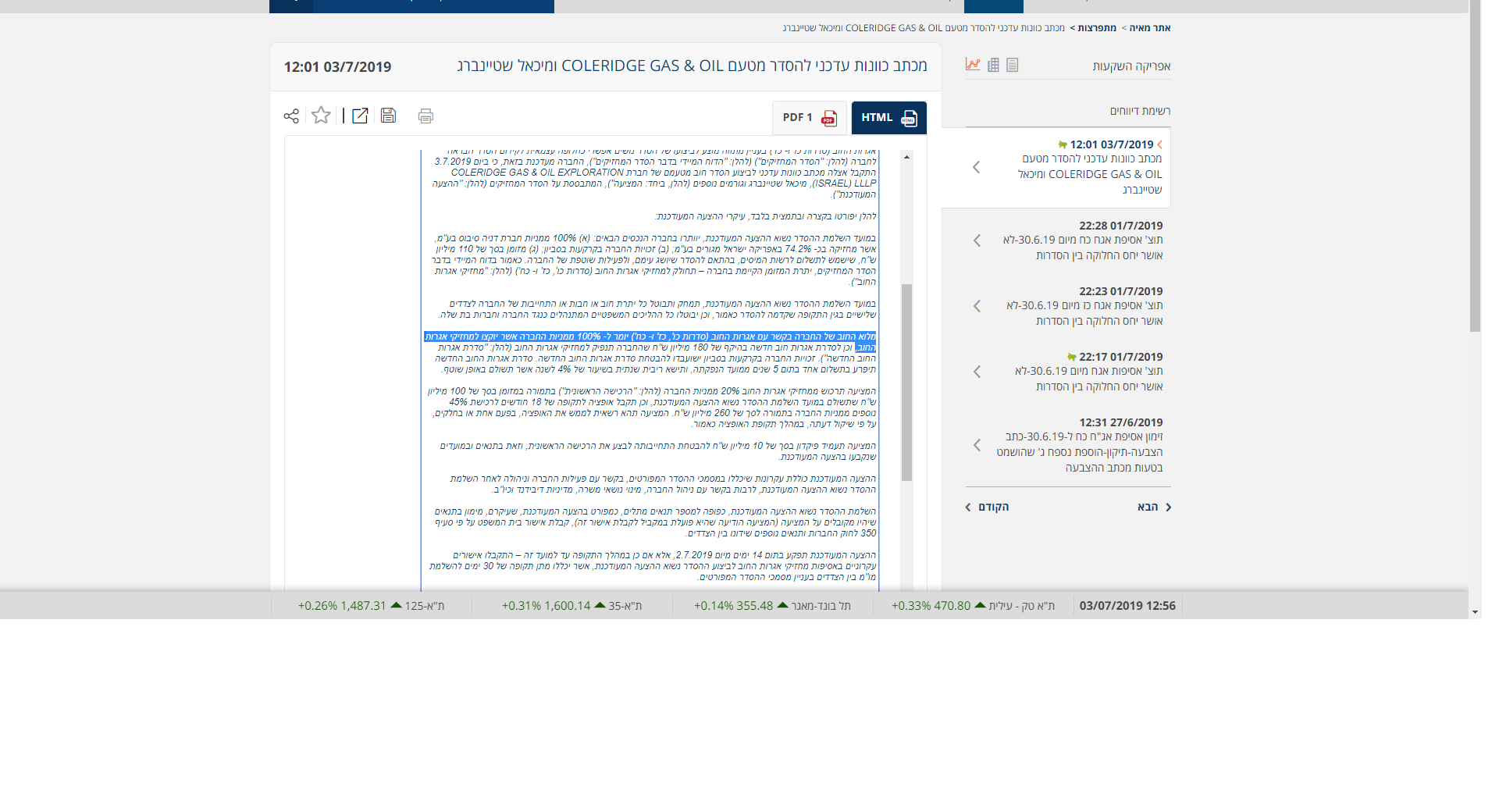 אפריקה השקעות מדווחת על הצעה להסדר חוב