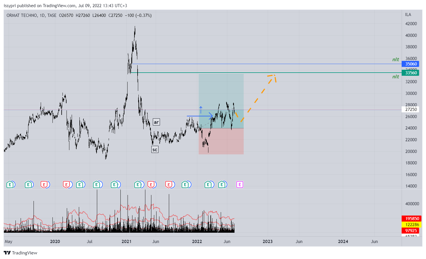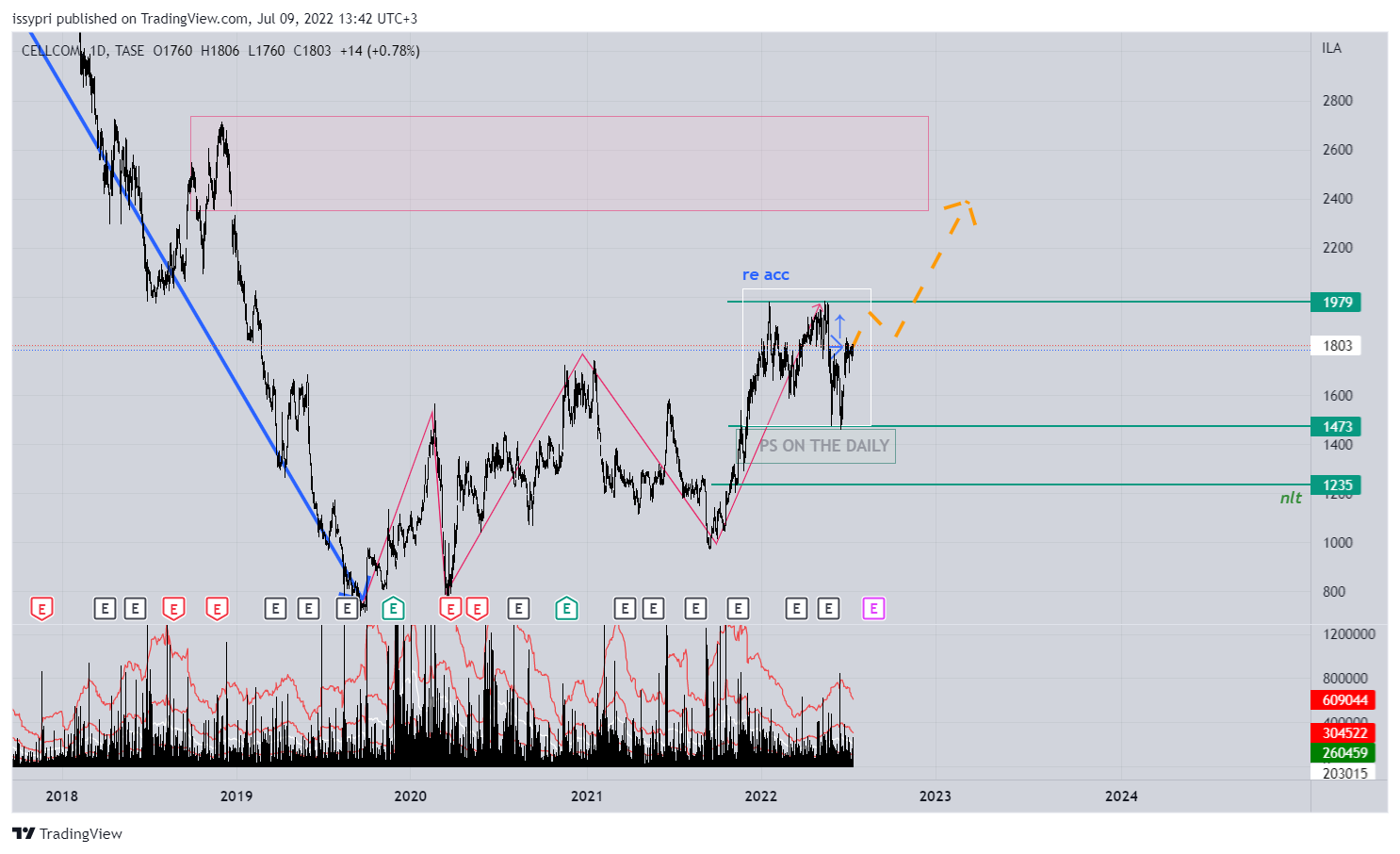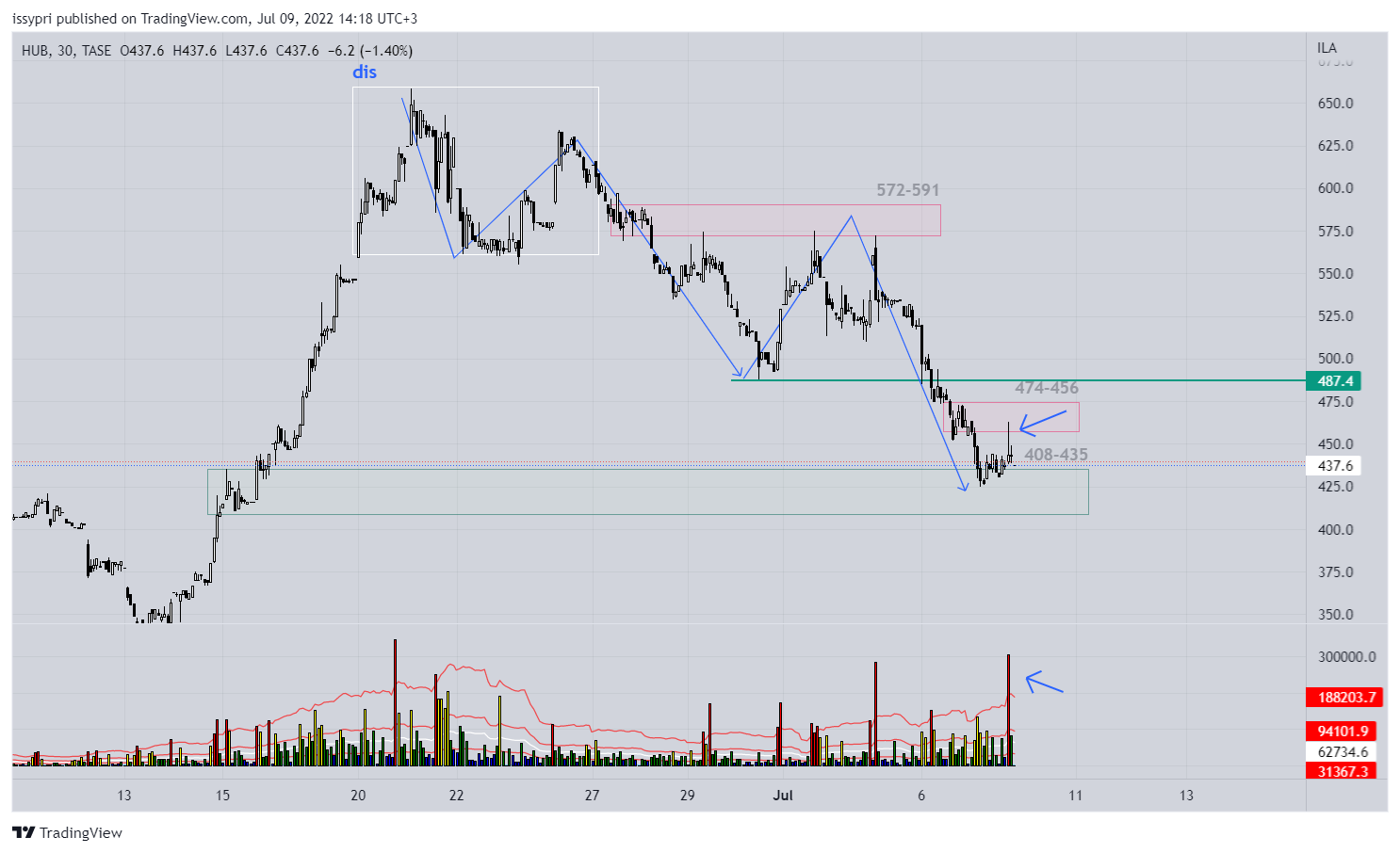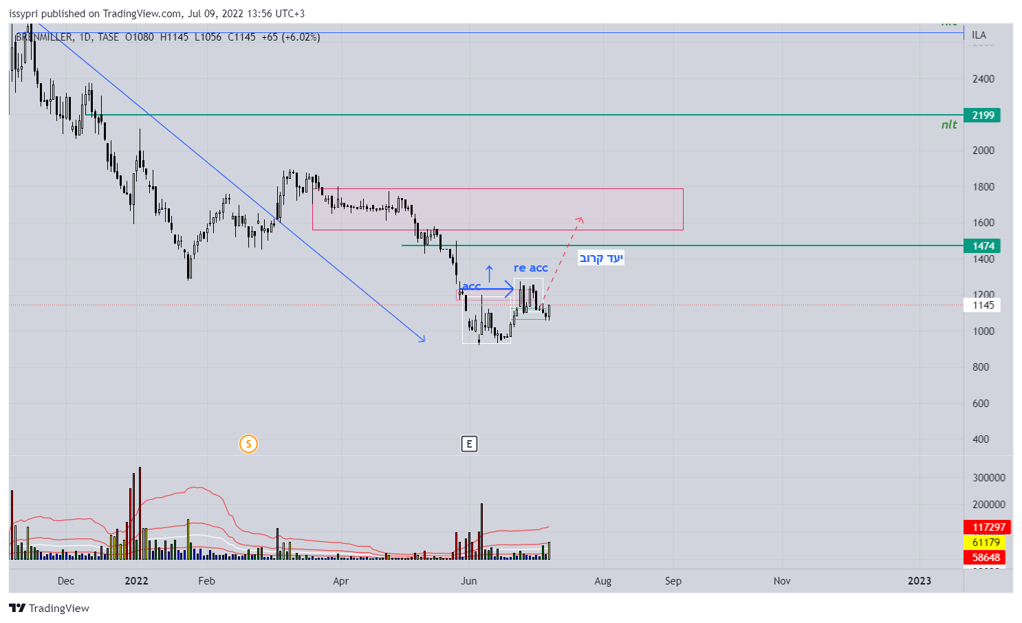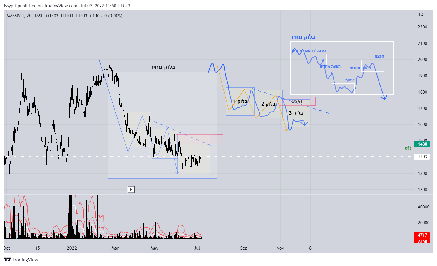 יחד עם ניתוח המניה, שירטטתי גם את הדרך שאני מסתכל על גרפים ומחזור מחיר. מבלי להיכנס יותר מידי לפרוט, הדברים מוסברים בצד. מי שרוצה לשאול שאלות. בכיף. מאסיבית כמו שאני מסתכל עליה היא באיסוף שהיעד הוא 1800-1900, החלק העליון של הבלוק הגדול. שאלת השאלות איפה להיכנס. כל אחד והשיטות שלו. אחד בפריצת תעלה והשני ברצועת היצע. אני רוצה לראות שרצף התנועה היורדת נפרץ במחזור גבוה וזה מבחינתי רצועת ההיצע האחרונה. (חלק עליון שלה 1540) אפשר גם לחפש התגברות של מחזורים באיסוף מה שמראה על מעורבות יותר גבוה של כסף כבד (חכם) ןמסמן על אפשרות פריצה קרובה. מבחינתי כל עוד זה לא קורה , האיסוף נמשך. כמובן אין פה המלצה. שכל אחד יעשה את ההחלטות שלו.