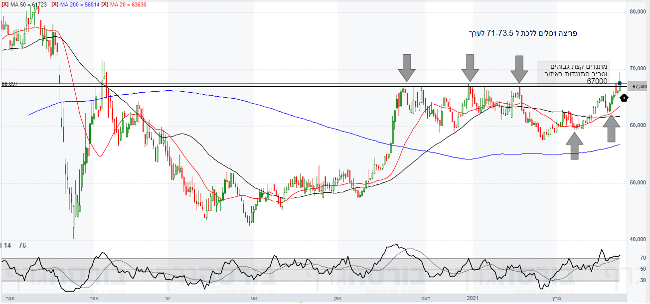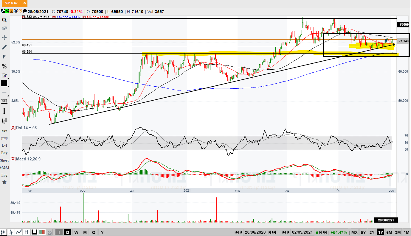 נתמכת כמה ימים על 60K סקטור נדלן שמתחיל להתעורר והדבר השני יותר חזק מהטכני הצפציפי של כל מניה ומניה