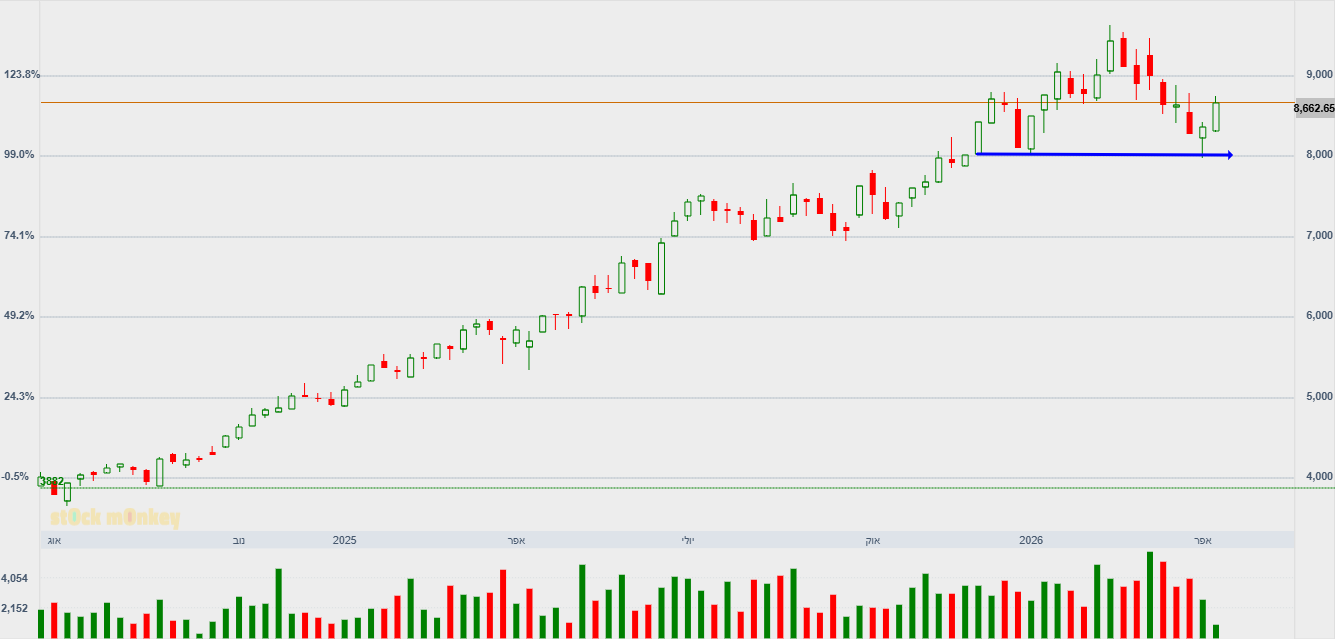 שנה וחצי של כסף שזורם בכיוון אחד ,בהרגשה שלי כל חודש מיואשים עוזבים את עוקב סנופי שהיה הלהיט של 2023-2024 .....2025-2026 כסף פשוט זורם בכיוון אחד וכולו זורם בעיקר לפיננסים ראו טבלה משקל מדובר ב10 מניות 5 בנקים 5 ביטוחים .... משקל 1 לאומי 6.77 2 פועלים 6.84 3 דיסקונט 6.34 4 מזרחי 5.22 5 בינלאומי 1.99 6 פניקס 5.04 7 הראל 2.37 8 כלל 2.23 9 מגדל 1.42 10 מנורה 1.29 39.51 וכמובן לא ניתן לבטל את המהלכים האדירים של מניות ארבטרז טבע ,אלביט,טאואר,נובה וקמטק מניות שעברו הכפלות ואף יותר בשנה וחצי אחרונות