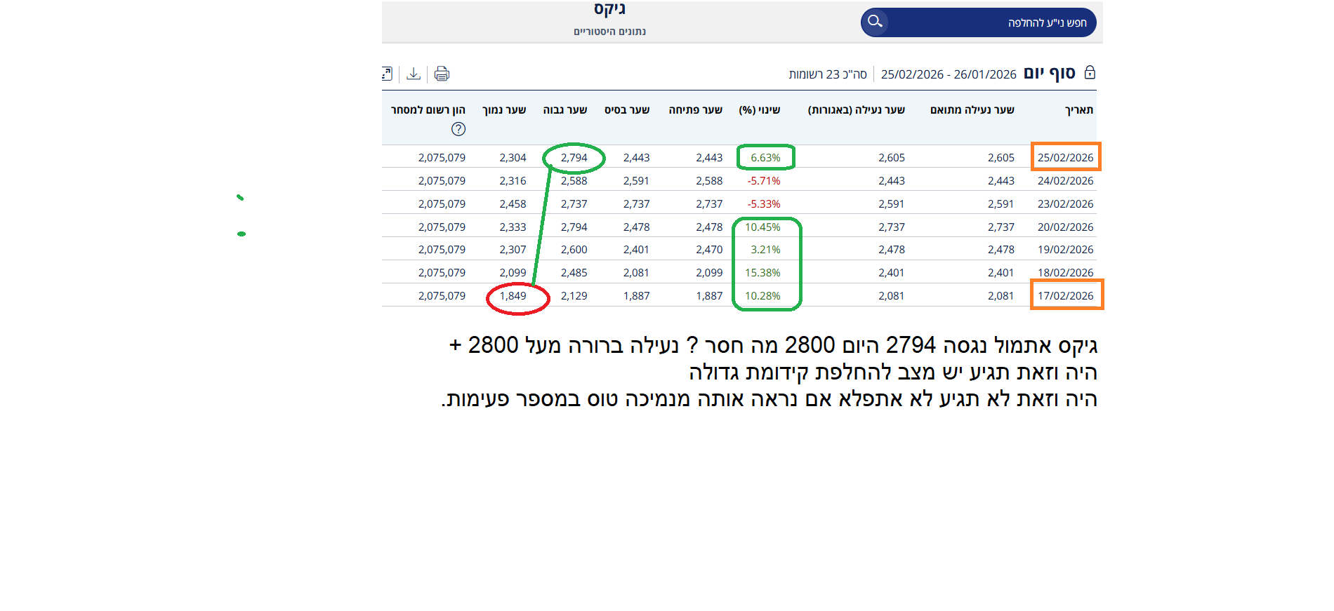 גיקס האם נעילה מעל 2800+ או ש .....