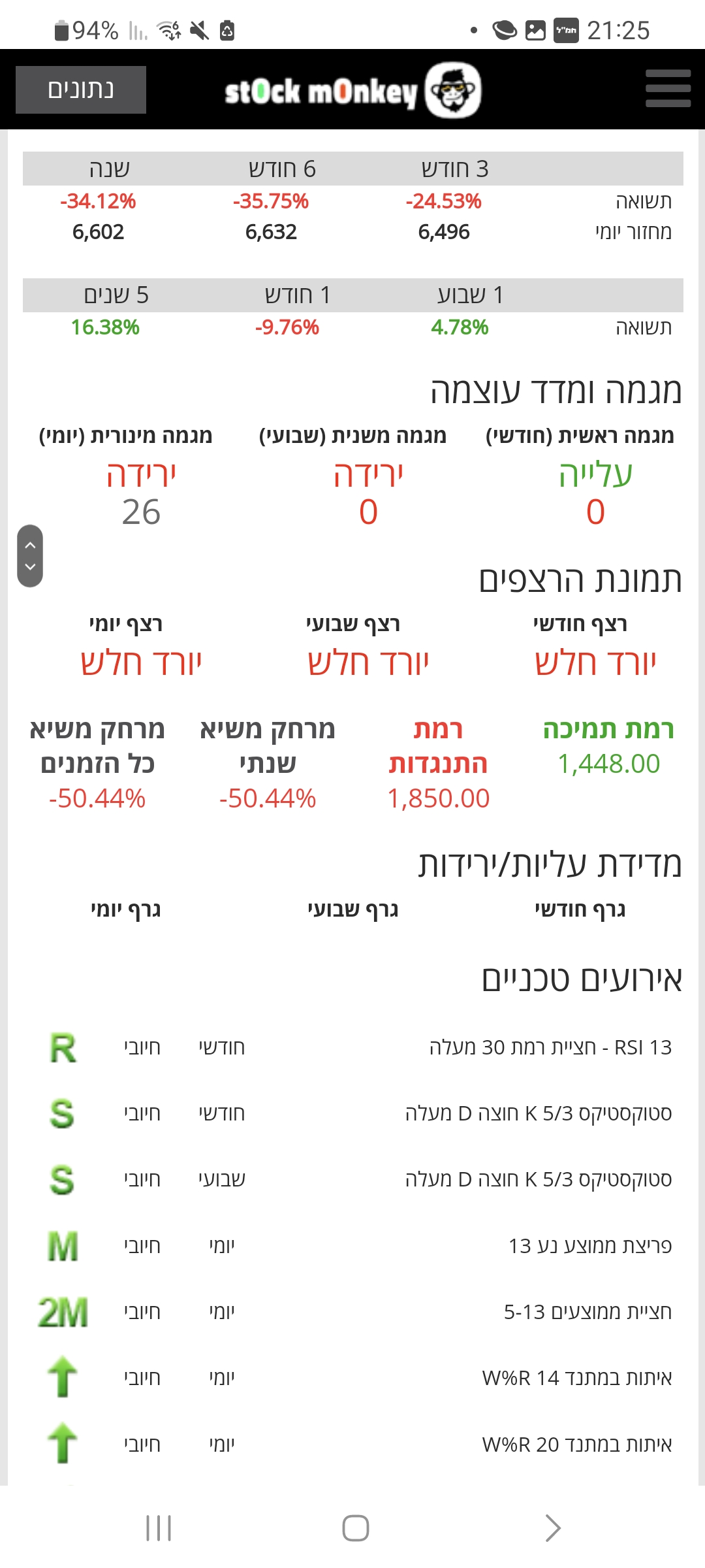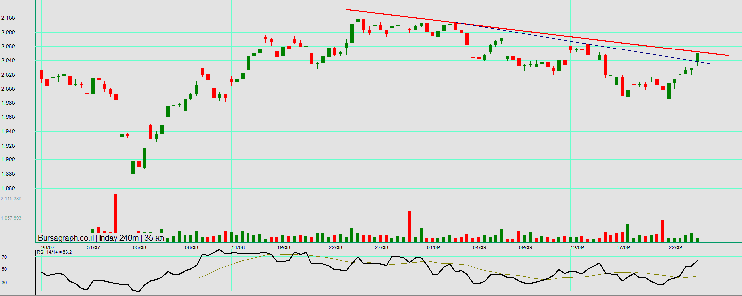מתקנת יפה לאחר 3 ימים רצופים של ירידות. בהחלט מעודד להמשך השבוע.