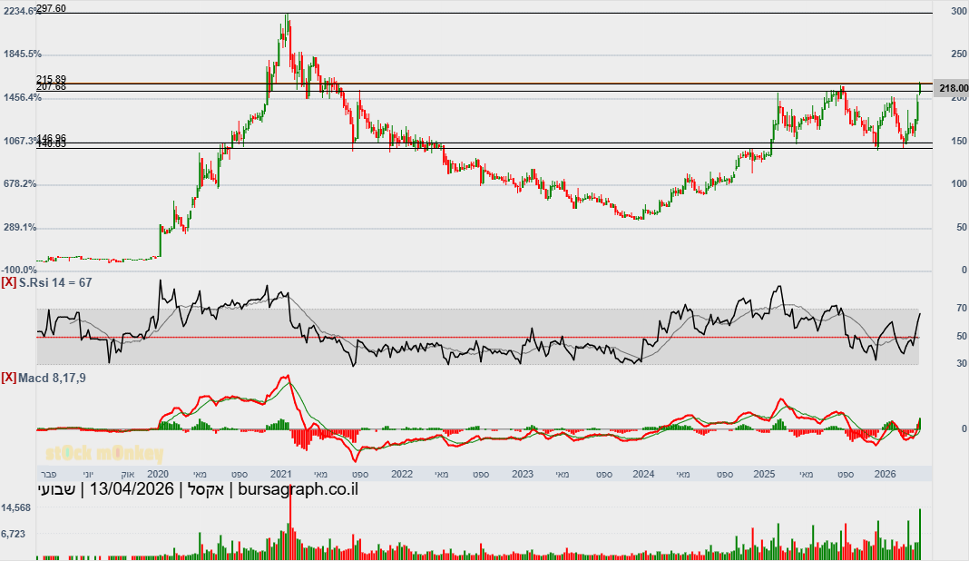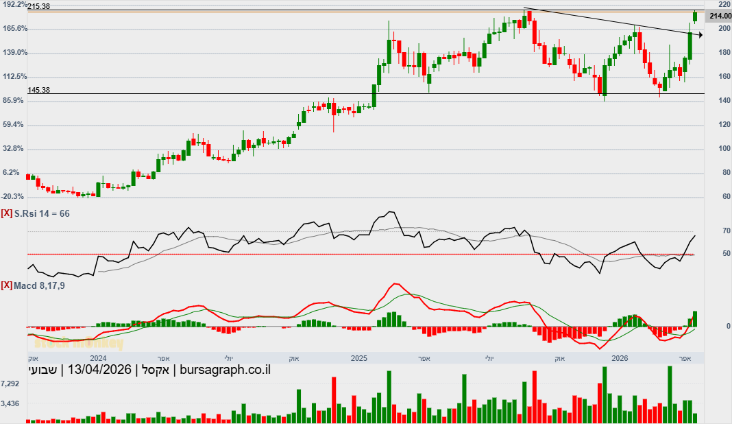 ב 157 וכרגע נתמכת על קו מגמה עולה קצר טווח וממוצע 26. זו נקודה טובה להיפוך ואם ייצא דוח טוב היום או שבוע הבא יכולה לעלות לגבוהים אחרונים 173 ו 187 מחזיק