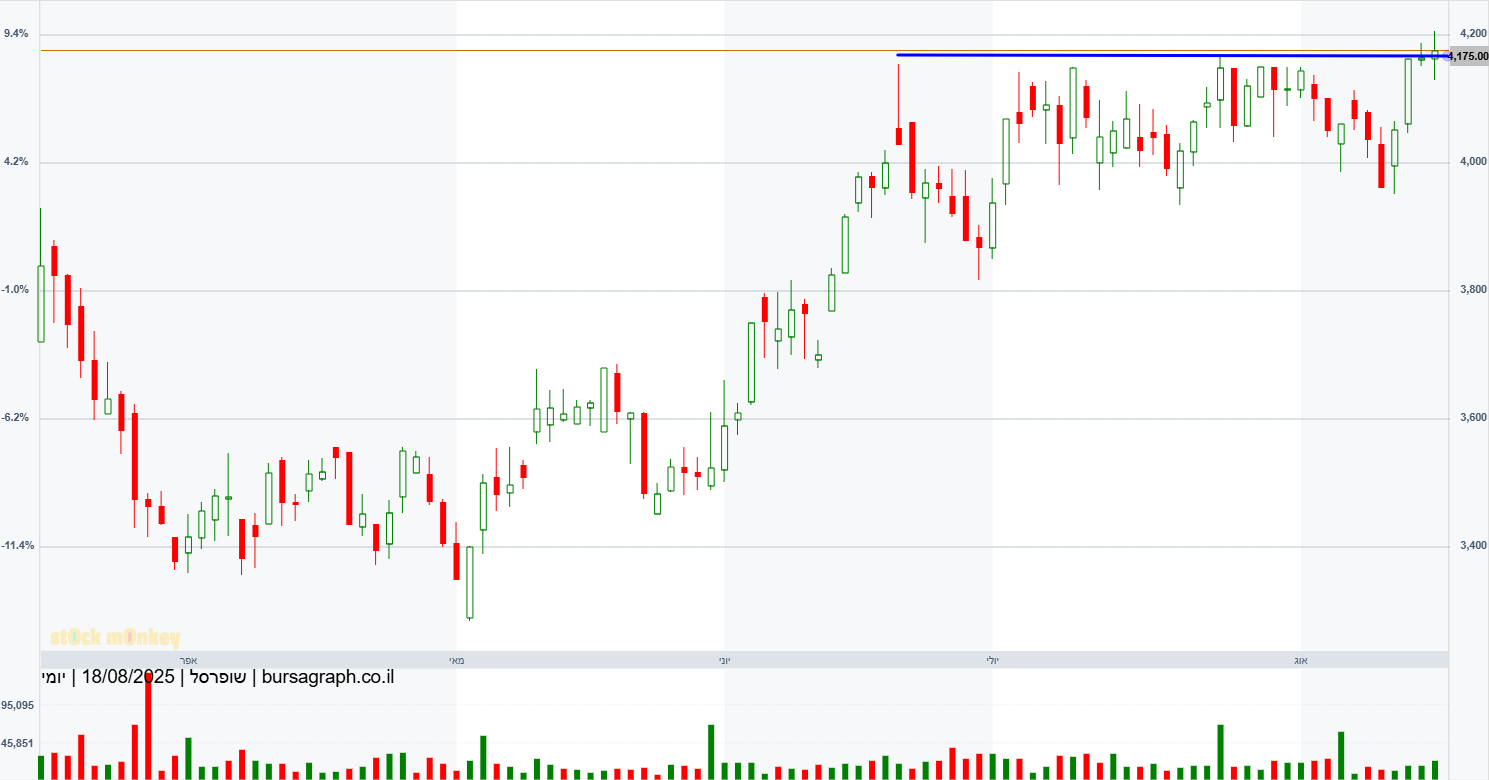 שופרסל ואמר לי כמה שהדוחות הקרובים יהיו בטח מדהימים. אמרתי לו שלדעתי העלייה המטאורית השנה כבר מבטאת את הדוחות המדהימים הללו פלוס פלוס. מעניין לראות אם תחזור לאתגר את השיא. אם הייתי מחזיק הייתי משחרר.