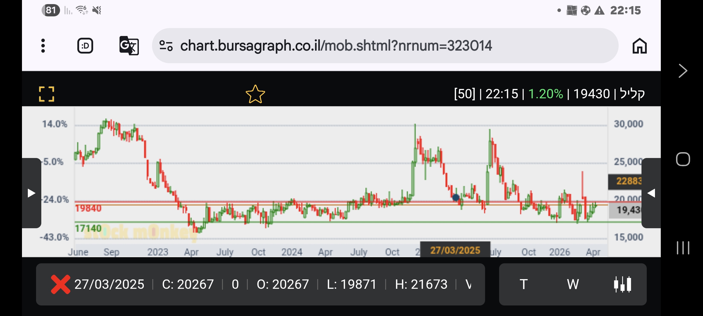 כמחזיק מניה זו זמן רב. כל פעם שהמניה מנסה להתרומם לחצות את 19900 מגיע גל מוכרים שמשאיר אותה קרובה לשער בסיס של אותו יום. חברה עם צבר הזמנות לשנים בשוק בה היא החזקה בתחום לא הגיוני בעיניי. לא ממליץ רק משחרר קיטור