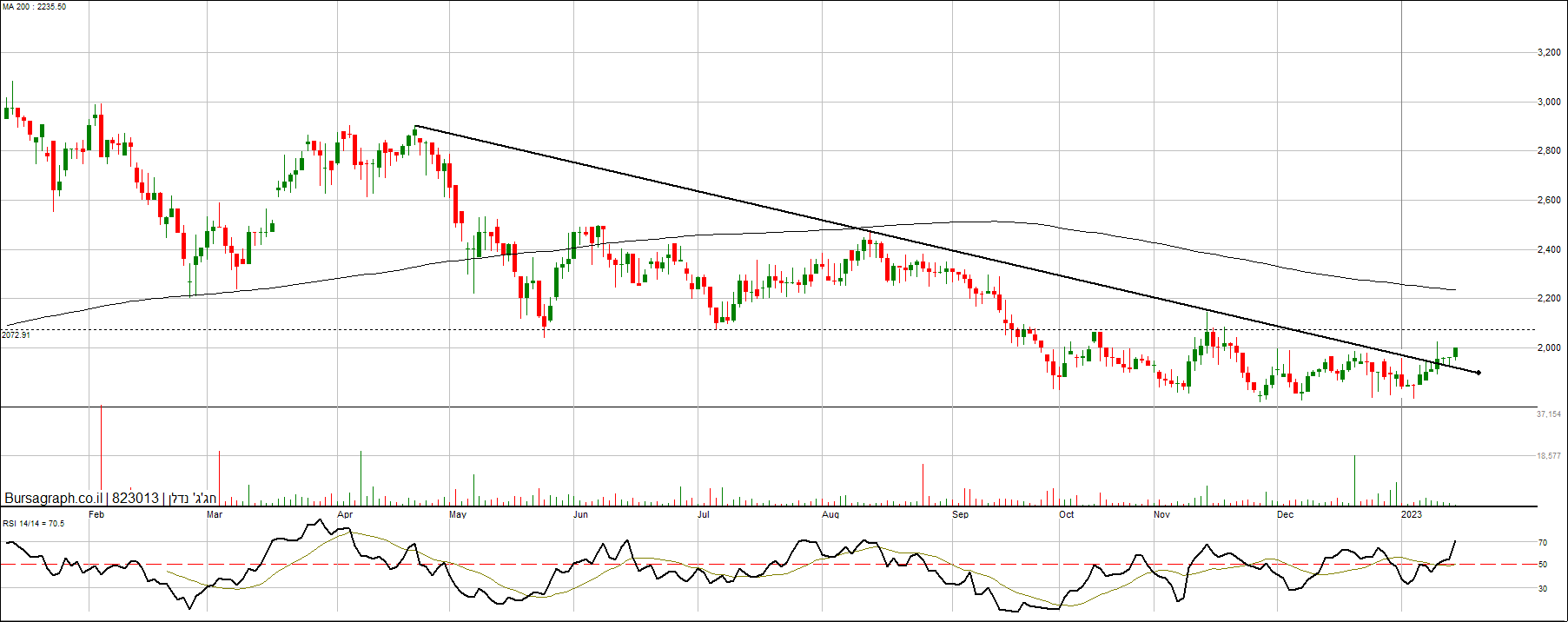 חגג' אחרי שפרצה קו מגמה יורד. מנסה לפרוץ2000