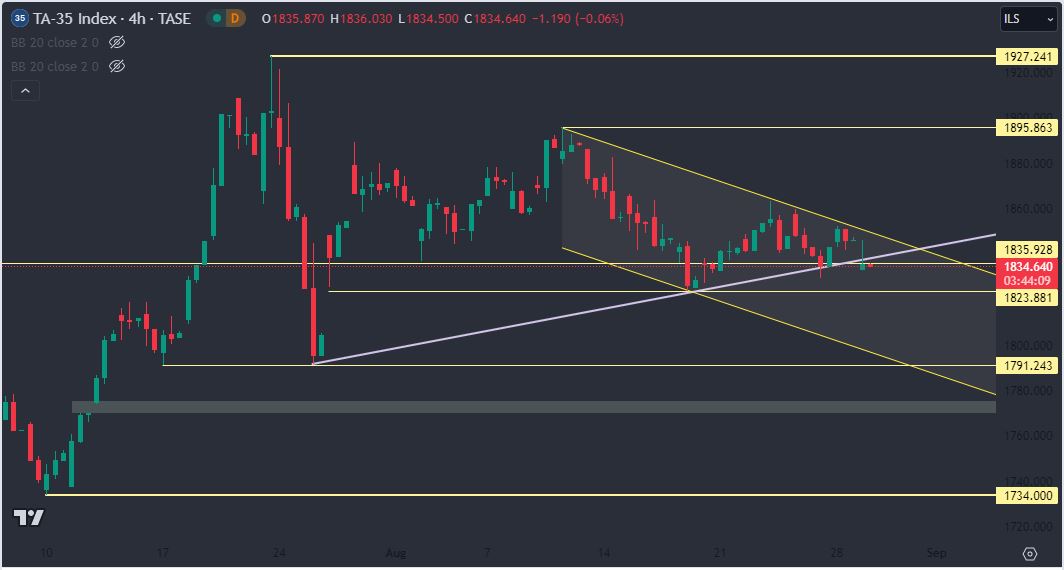 מעלה גרף מעוף 4שעות לראות עיניי. היה לנו קו מגמה עולה בשילוב אופקית 1837 שנשבר היום (ערכתי הודעה). כרגע נעים בתוך תעלה יורדת של הדר. נראה שבודקים את האופקית 1837 מלמטה להמשך ירידות עד 1823 יעד ראשון. 1791 יעד שני תחתית תעלה ואופקית חשובה. גאפ פתוח 1770. מה אתם אומרים? חושב על פוטים לפקיעה החודשית הבאה לגידור תיק.
