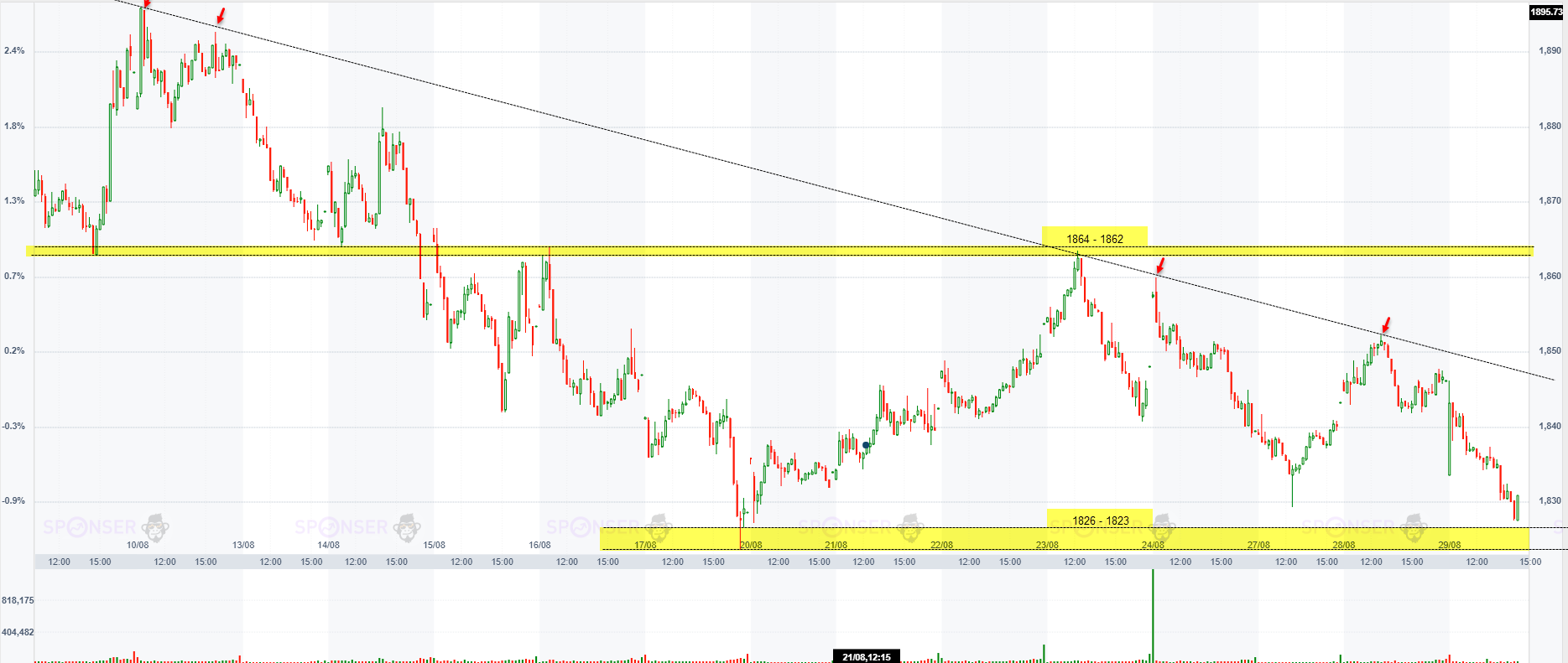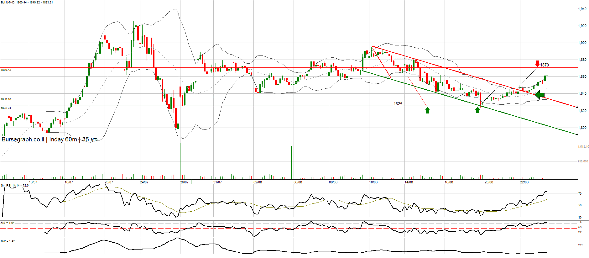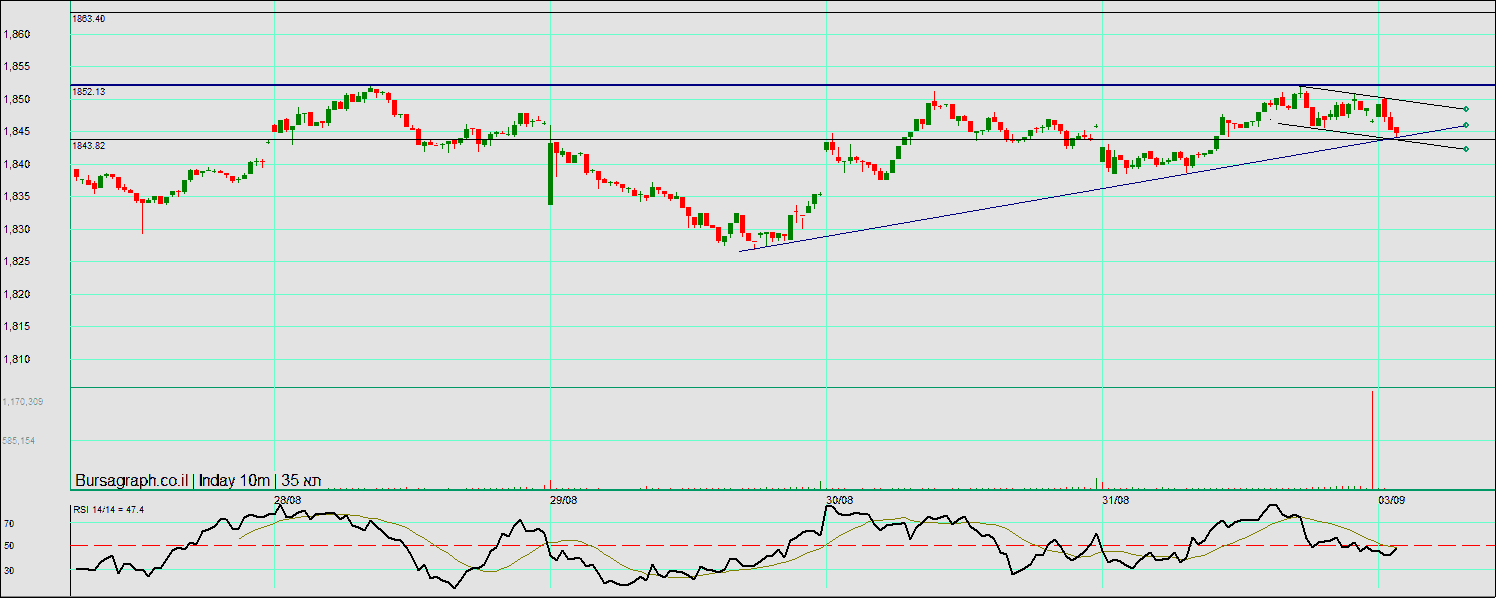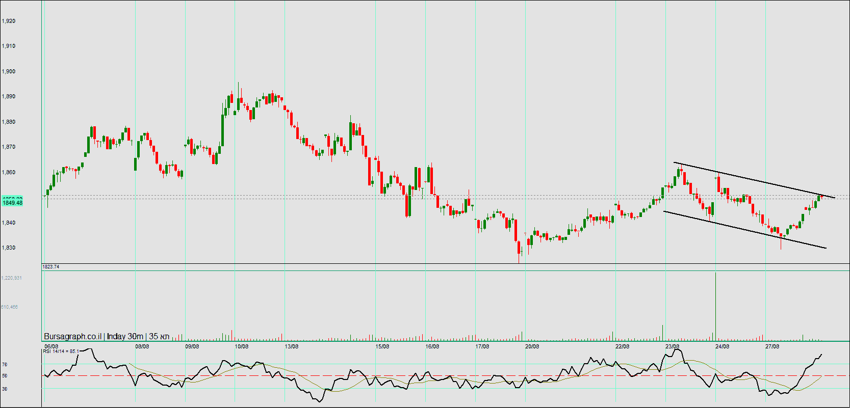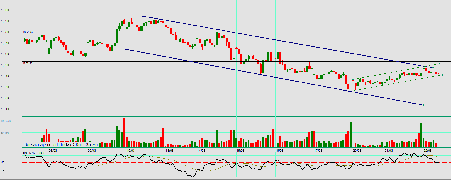 קצה עליון תעלה יורדת.. מעל 1850 חיובי להמשך. ממתין לאישור בפריצה ואישור.. המעשה ההגיוני כרגע הוא שורט אבל לא אוהב לישון עם אופציות.