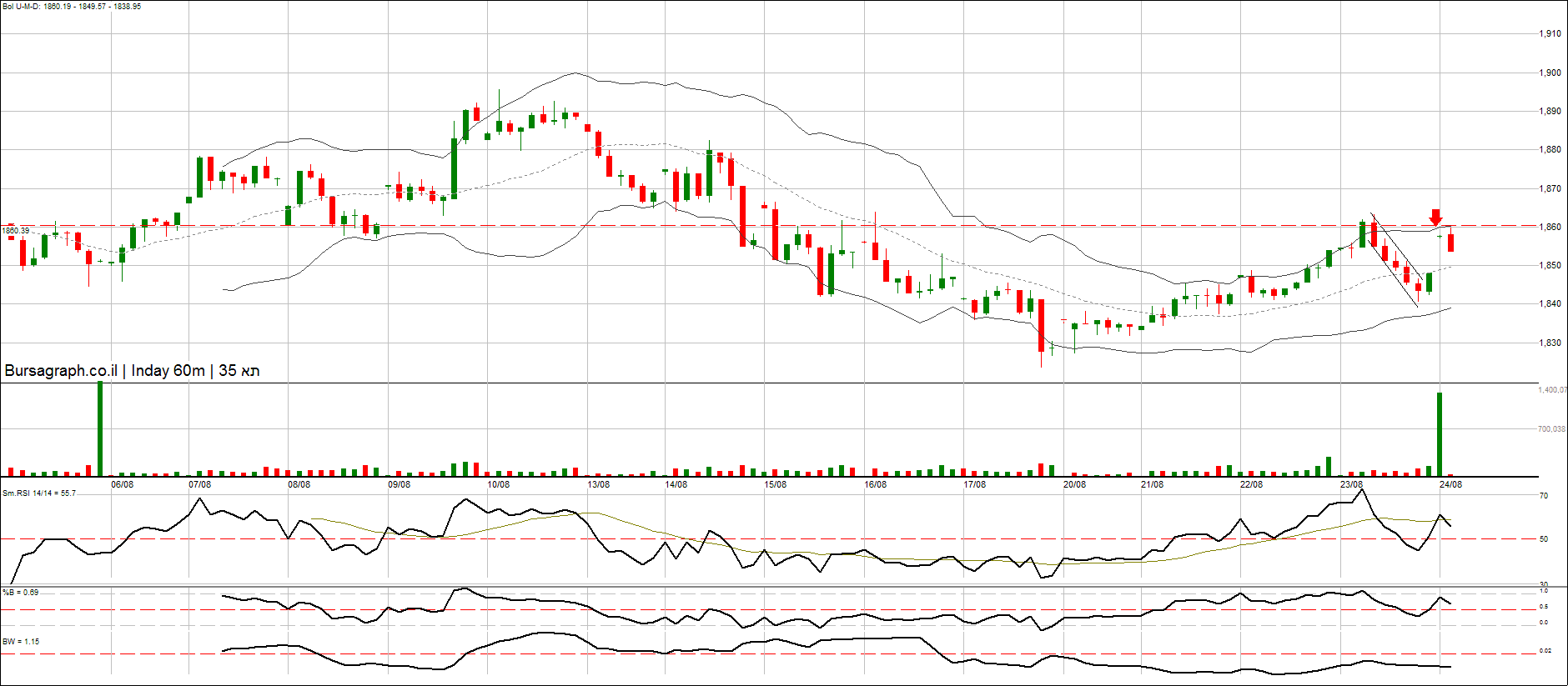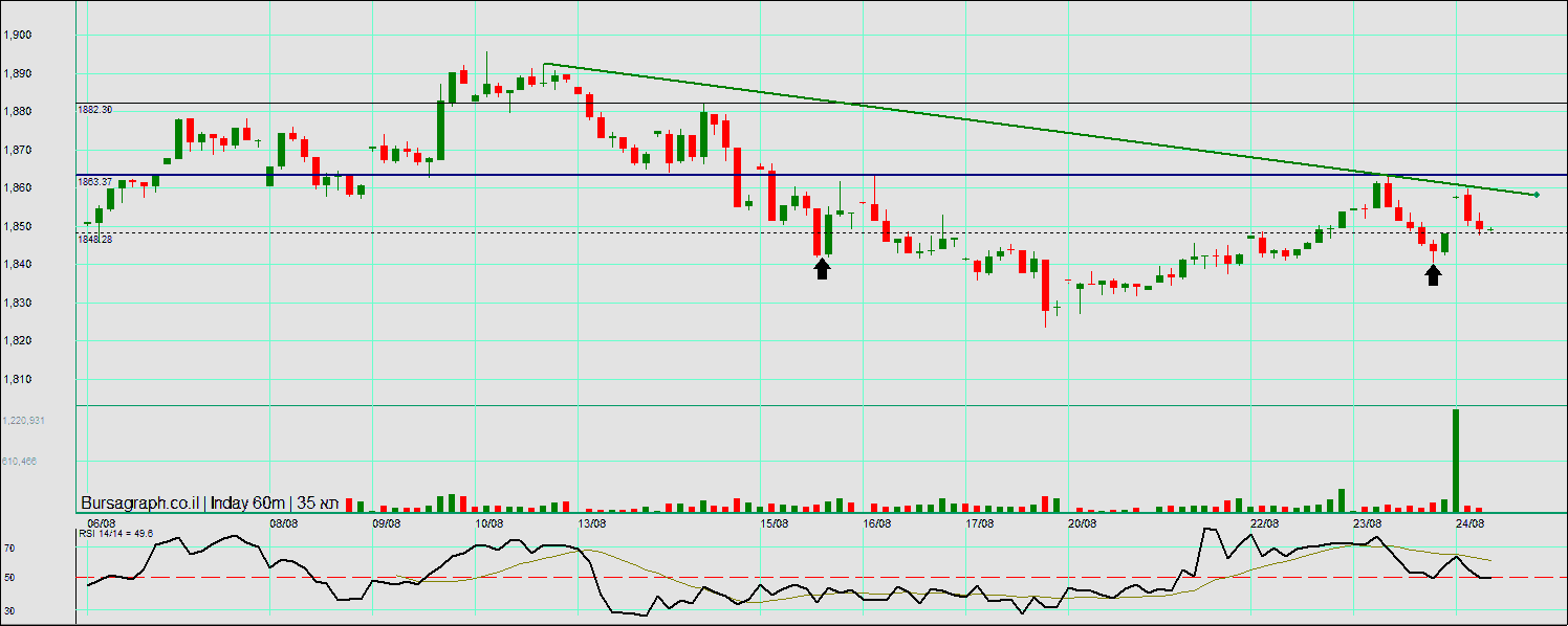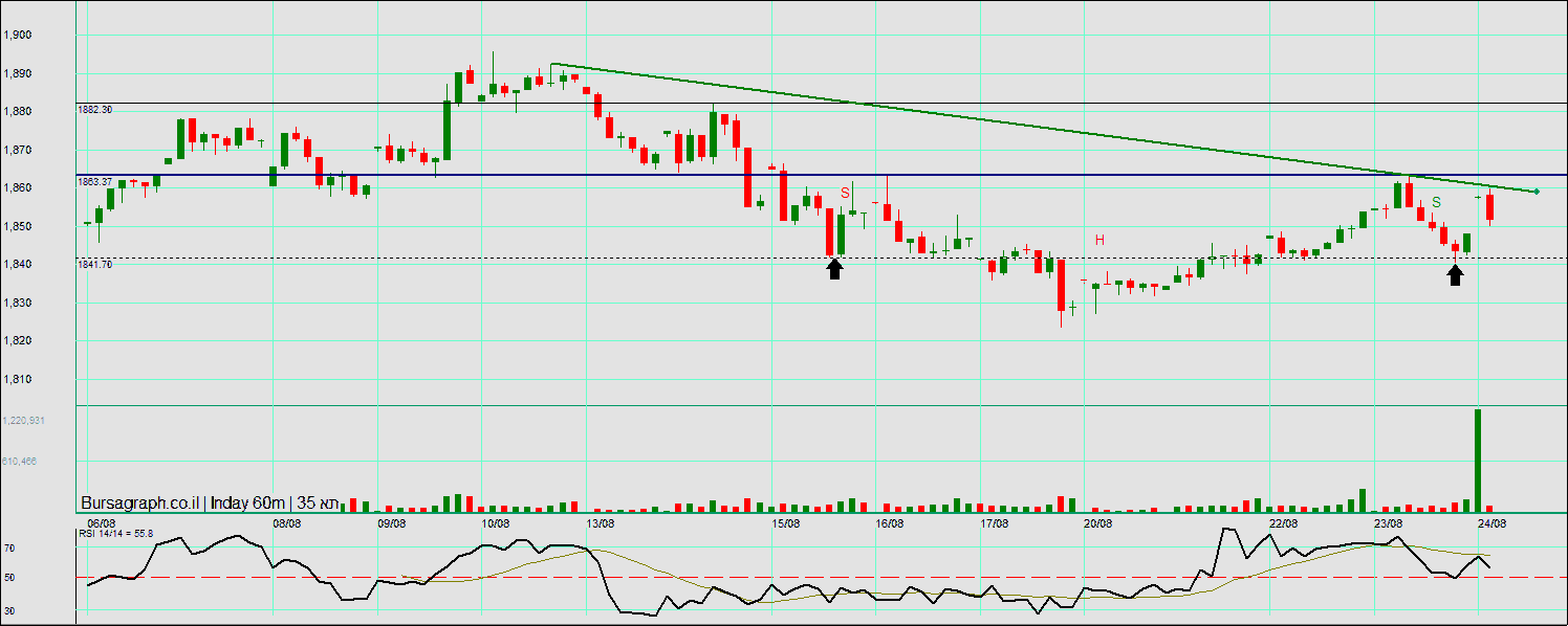 כל חוב משולם עם איפוק....שבוע שעבר היה 1824-1886.נעילה יומית מעל 1848 תתן אישור לעוד מנה.לאחר 5 ימים שליליים שבוע שעבר-אולי נקבל 5 חיובי:))