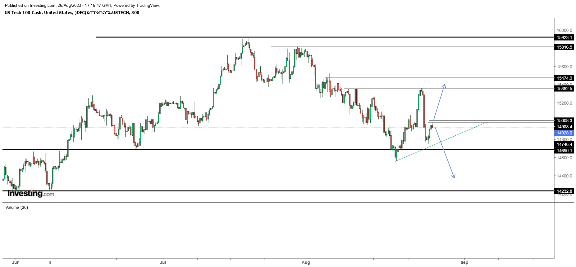 חוזה נאסדק ירד ונתמך בתמיכה מינורית באזור 14750 כמו שהערכתי שיקרה. אזור 14700 הוא אזור תמיכה מהותי ולא ישבר כל כך מהר בטח אחרי תנועה חדה של 4 אחוז למטה. לכן למרות כל התרחישים הדוביים, כשיש תמיכה כזו מהותית צריך לקחת בחשבון שרוב הסיכויים שהיא תחזיק, גם מכיוון שהמגמה לטווח הארוך עדיין שורית. מה יהיה מכאן? התרחיש הדובי עדיין קיים הרו"כ עדיין בתוקף וגם סיכוי לדגל דובי. מצד שני התמיכה המהותית עבדה ובינתיים נבנה שפל עולה. לדעתי אנחנו כרגע לכיוון התרחיש השורי. התבוססות מעל אזור 14950-80 תאשר המשך עליות עד לאזור 15360-15450. סגירה יומית מעל 15450 תוביל אותנו לגבוהים. ומדגיש פעם נוספת שיתכן שאנחנו נכנסים לתבנית דשדוש של מספר חודשים בין 14690 ל15900 אבל עדיין מוקדם לקבוע. אני כרגע בלונג ממונף משער מ14755 , נשאר שם אלא אם ירדו מאזור 14850. שבוע טוב