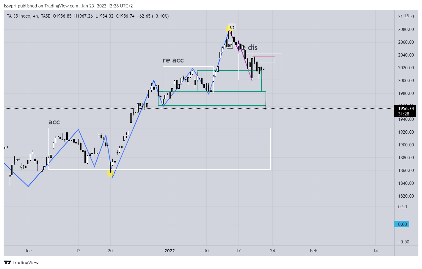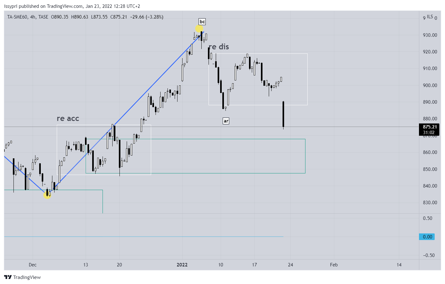 לקראת פתיחת המסחר האדומה שצפויה מחר מה מצב המדדים ואיפה התמיכות מדד הבנקים תחילה הטווח העולה שהתחיל מאיסוף / איסוף מחדש (acc), דרך שני איסופים מחדש (re acca) הגיע לאזור 3772 ומשם ירד וייצר תבנית שינוי התנהגות. (V הפוך חזק). כרגע הוא בעיצומו של פיזור מחדש (re dis) מעל רצועת תמיכה. צפי - הרצועה הראשונה תישבר (זה כנראה היה מתוכנן בכל מקרה) והמחיר יילך לכיוון הרצועה הראשונה. זה הכיוון הכללי (לא חייב שכל הירידה תהיה מחר)